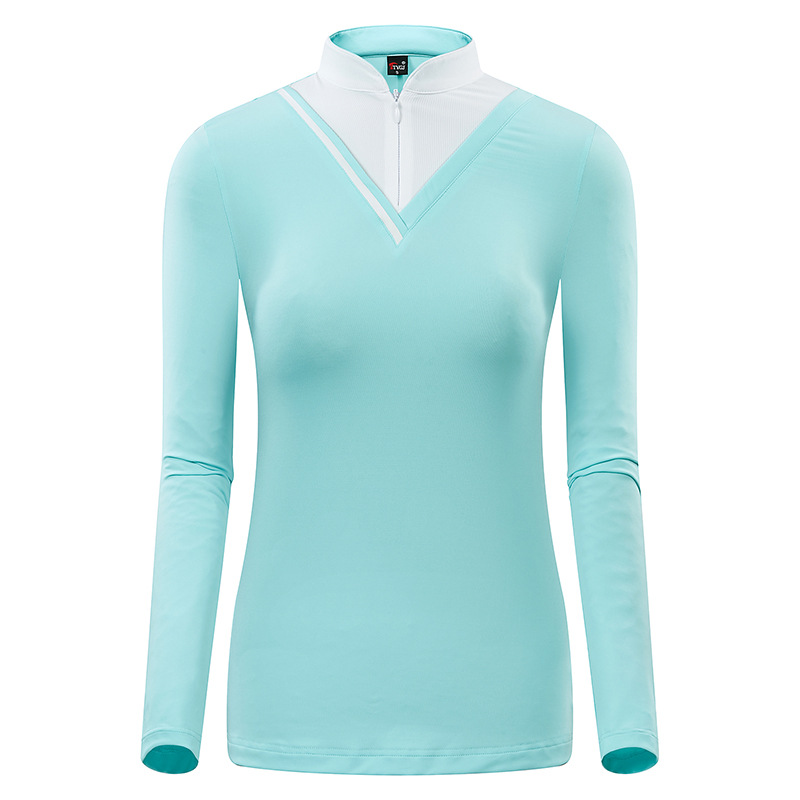 새로운 여성 골프 원피스 봄과 여름 긴팔 티셔츠 스탠드 칼라 태양 보호 한국 스타일 슬림핏 스포츠 골프 세트