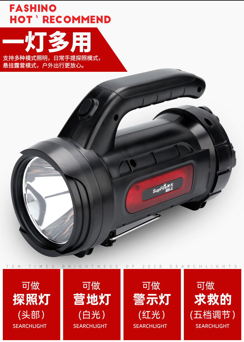 휴대용 서치라이트 led 휴대용 조명 야외 다기능 순찰 등 핸드 헬드 강한 빛 충전 방수 비상등