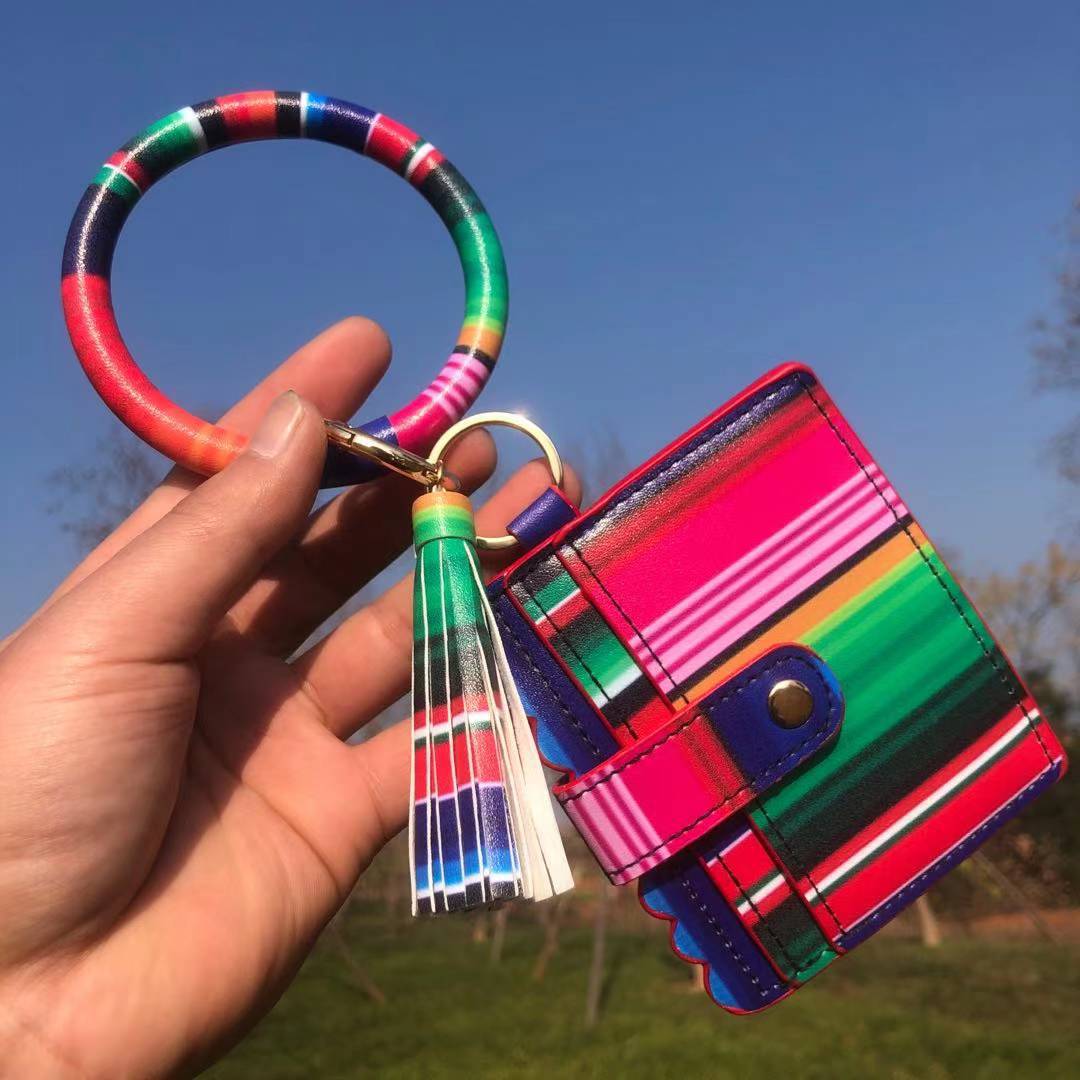 2025년 신상 레오파드 프린트 PU 가죽 프린지 팔찌 키체인 여성용 동전 지갑 카드홀더 클러치백 서류 가방