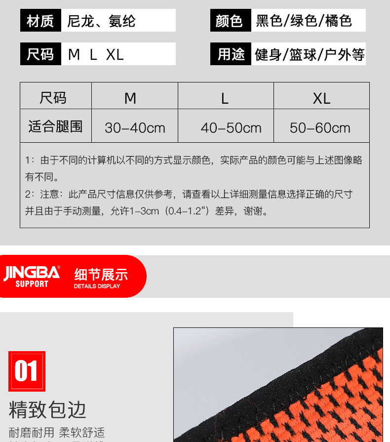JINGBA 스포츠 무릎 패드 Lengthen 나일론 무릎 따뜻한 야외 달리기 등산 사이클링 피트니스 프로텍터 도매스토어 가기