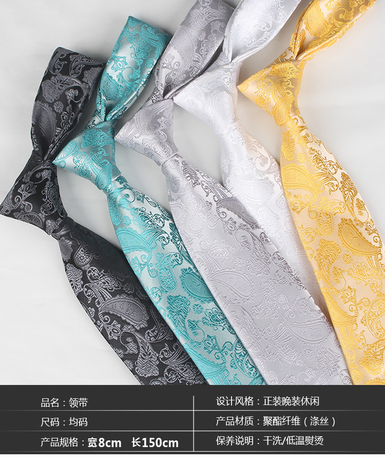 영국 스타일 페이즐리 패턴 넥타이 남자의 결혼식 저녁 원피스 연회 남자의 넥타이 화이트 실버 골드 넥타이