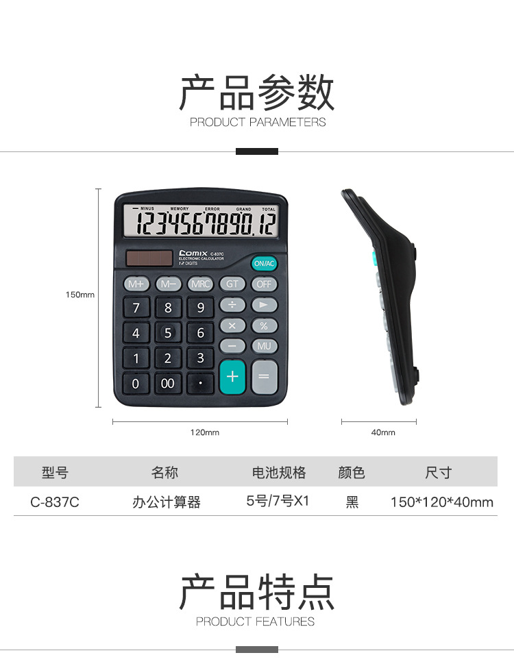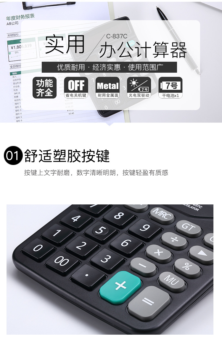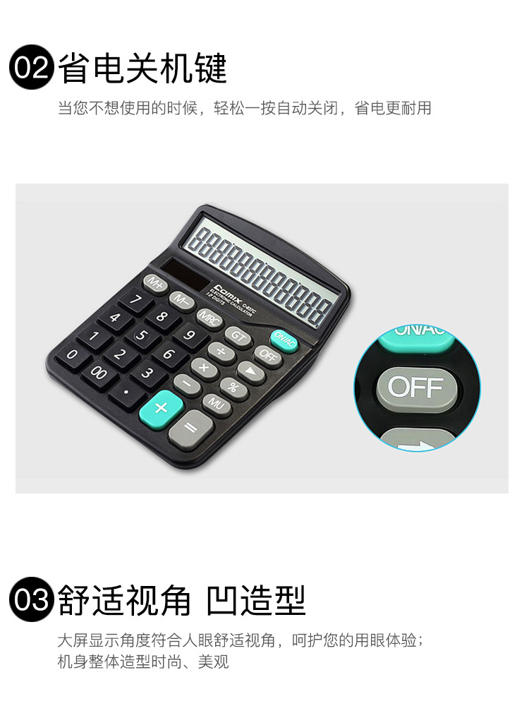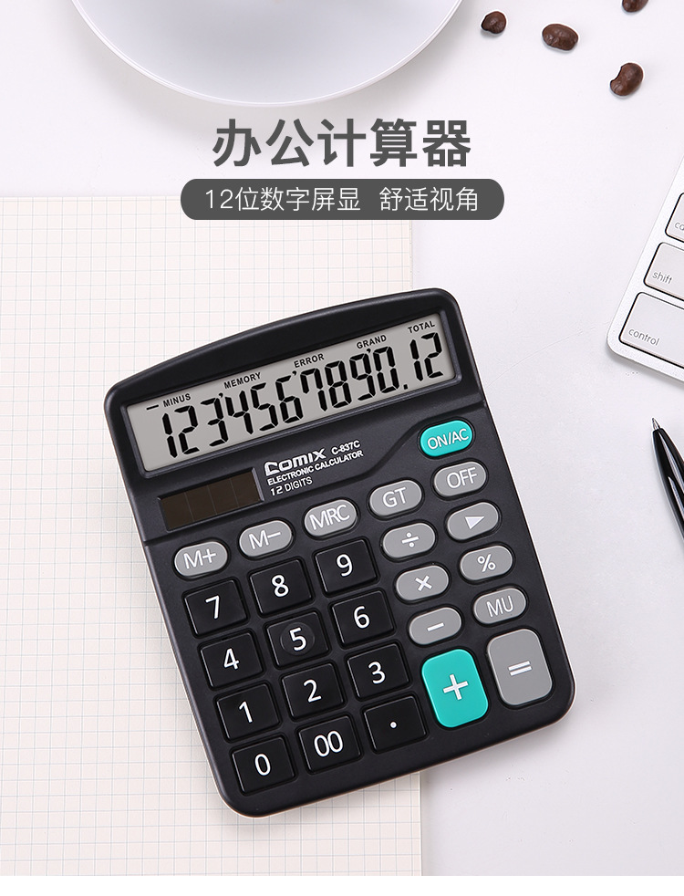 Qixin C- 837C 계산기 대형 화면 대형 버튼 사무용품 학생 재무 회계 대형 미니 휴대용