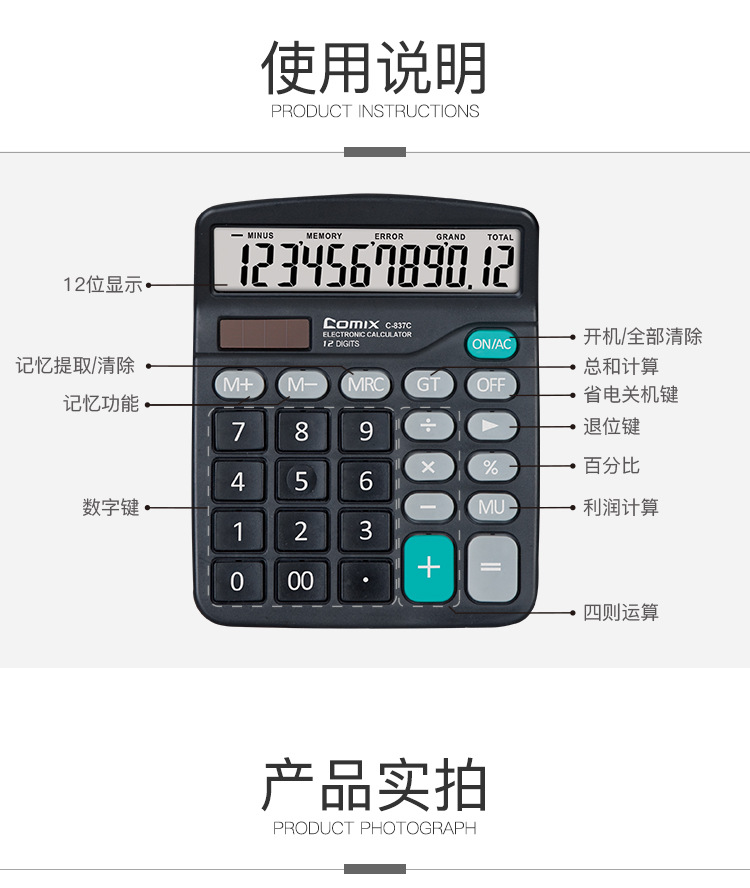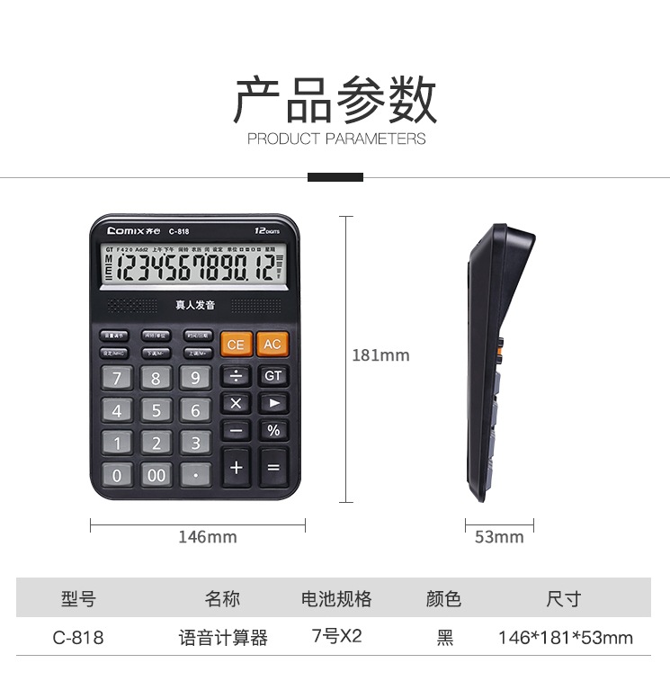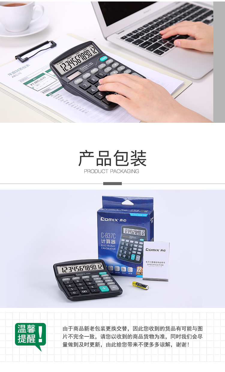 Qixin C- 837C 계산기 대형 화면 대형 버튼 사무용품 학생 재무 회계 대형 미니 휴대용스토어 가기