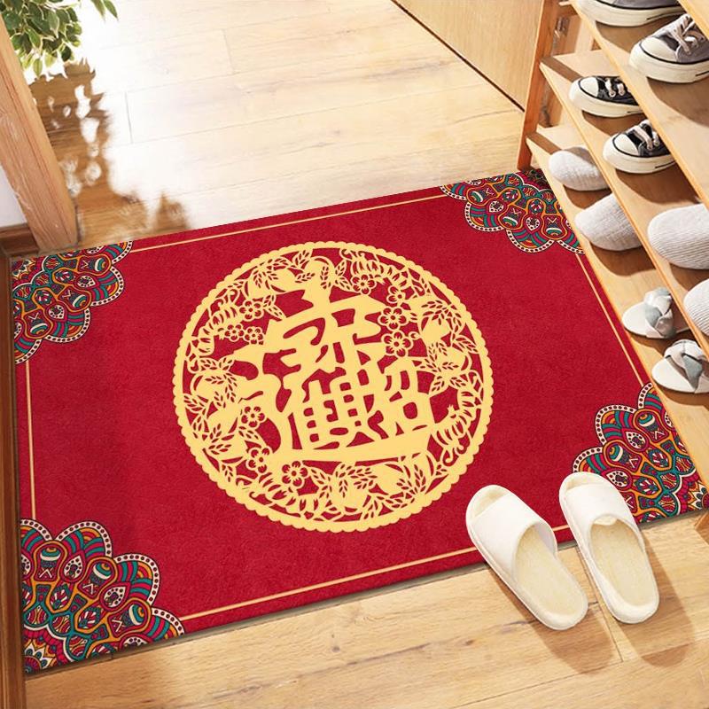 Ping An 도어 매트 가정용 중국식 축제 빨간색 미끄럼 방지 바닥 매트 입구 도어 입구 흡수성 발 매트스토어 가기