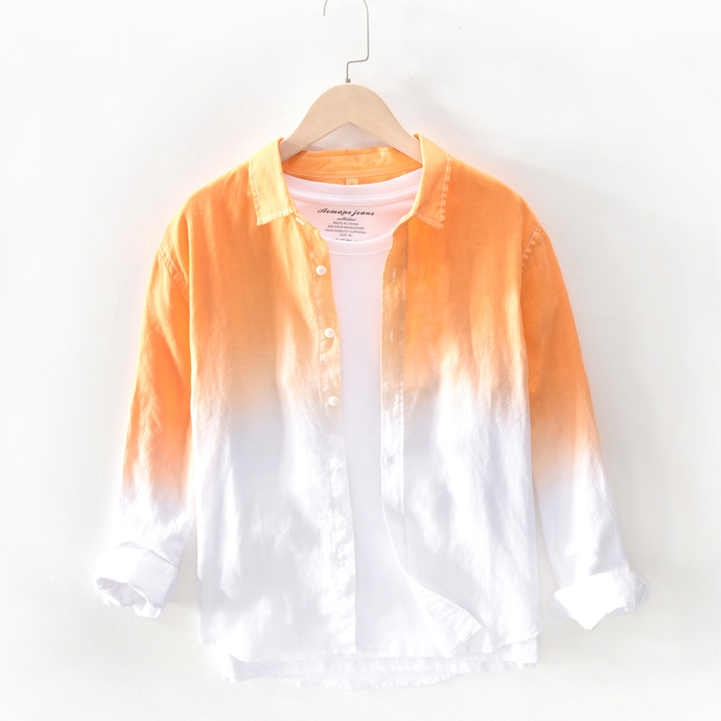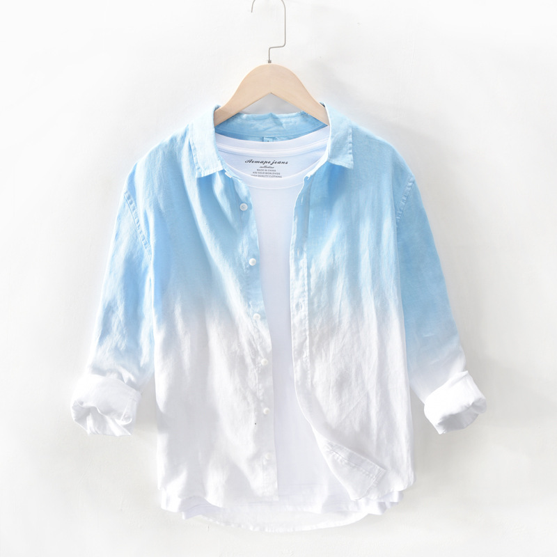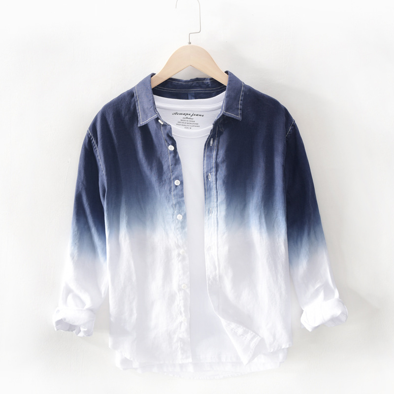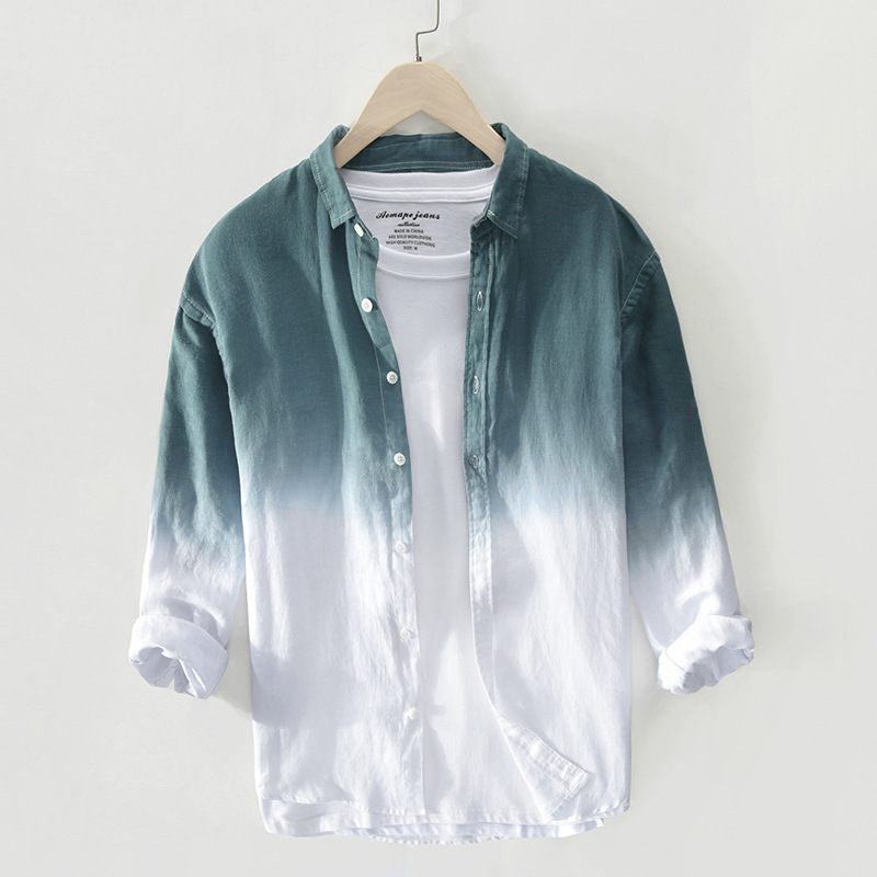 새로운 옷깃 신선한 그라디언트 남성 캐주얼 린넨 긴 소매 셔츠 잘 생긴 남성 셔츠 734 세대