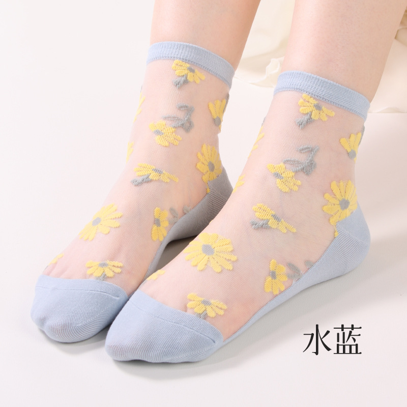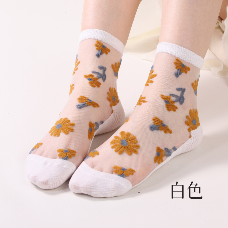 마스터 카드 패션 투명 나일론 실크 면 바닥 여성 양말 데이지 꽃 투명 실크 여성 양말 크리스탈 스타킹 어린이 도매스토어 가기