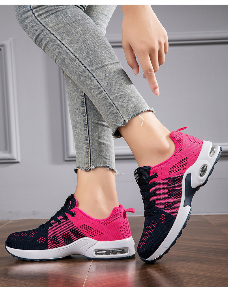 국경 간 플러스 사이즈 메쉬 통기성 경량 스포츠 여성 신발 패션 올 매치 플라이 짠 캐주얼 PU 리얼 에어 쿠션 운동화스토어 가기
