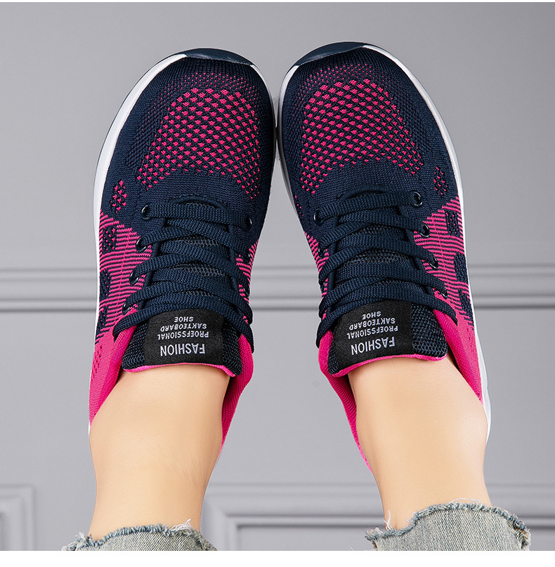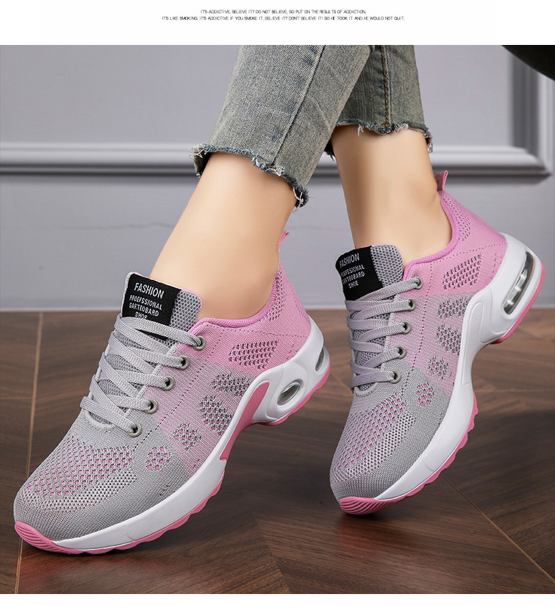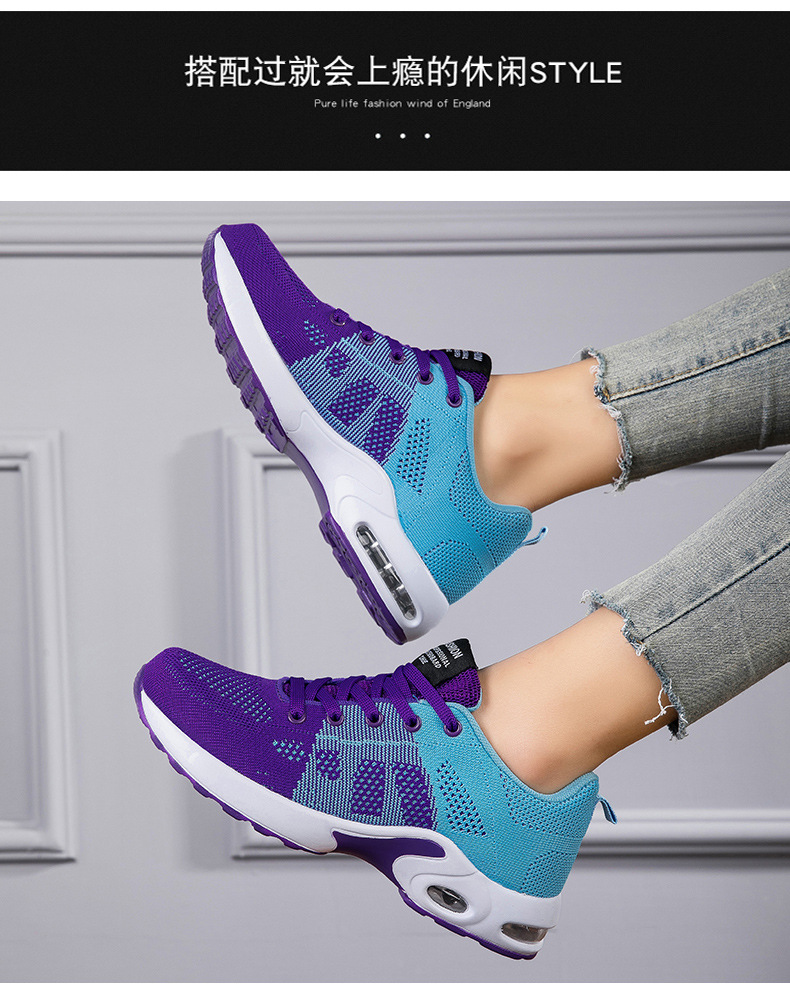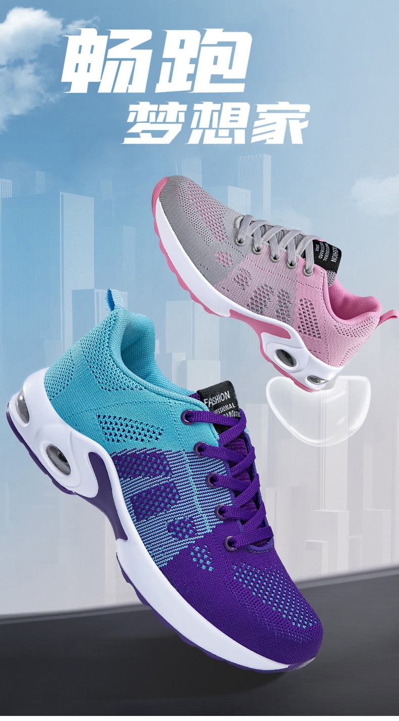 국경 간 플러스 사이즈 메쉬 통기성 경량 스포츠 여성 신발 패션 올 매치 플라이 짠 캐주얼 PU 리얼 에어 쿠션 운동화