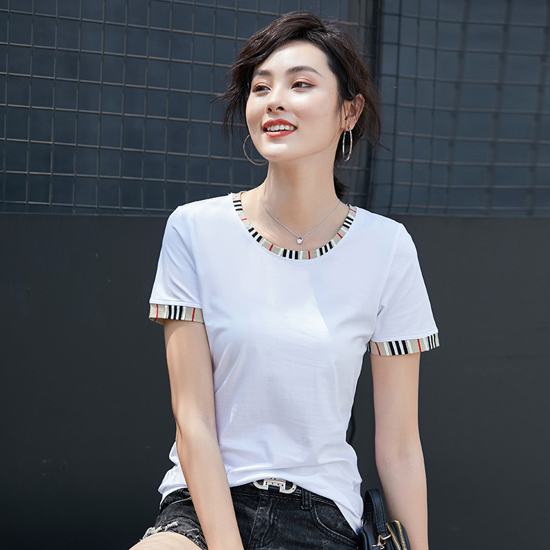 반팔 티셔츠 여성 한국 신제품 2025 인기 스트라이프 라운드 넥 스플라이싱 슬림 심플 탑 6728스토어 가기