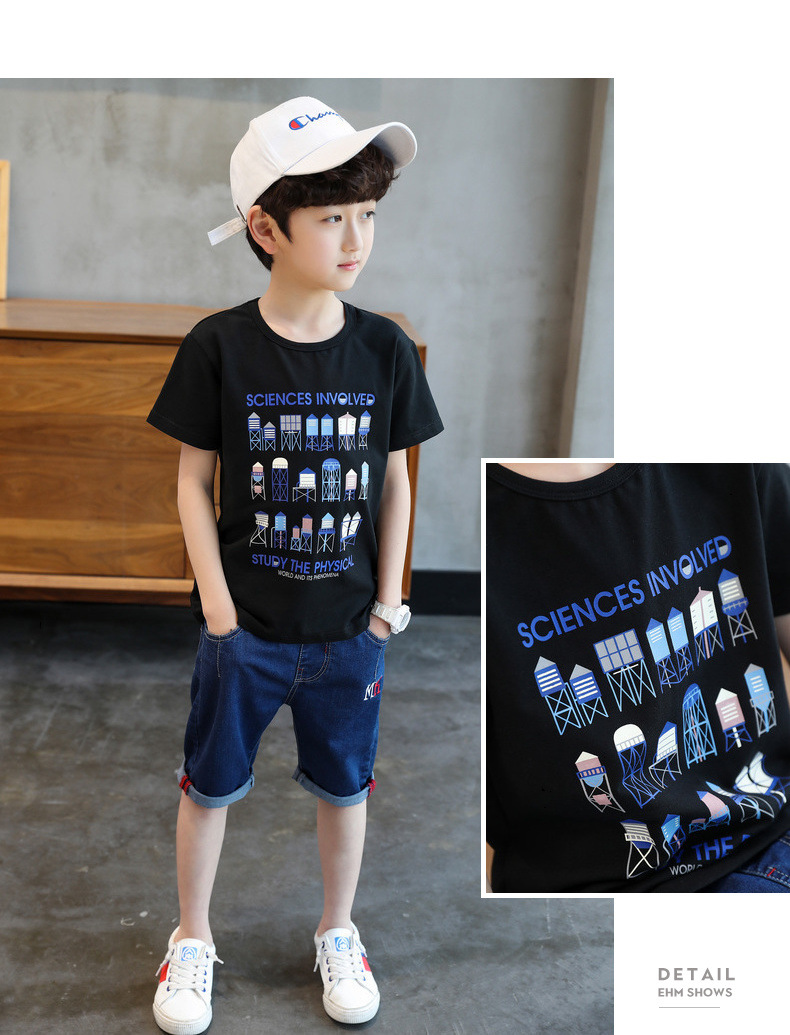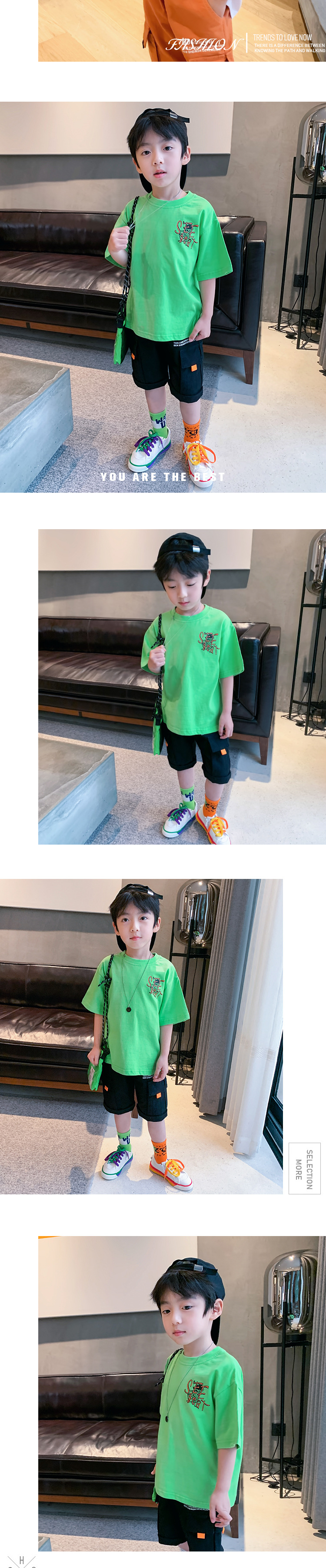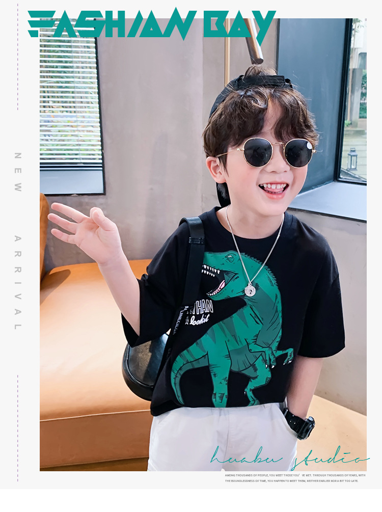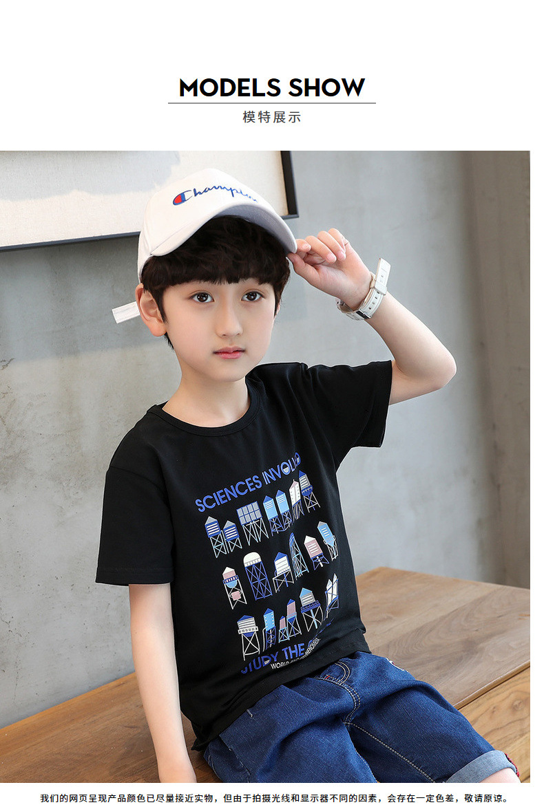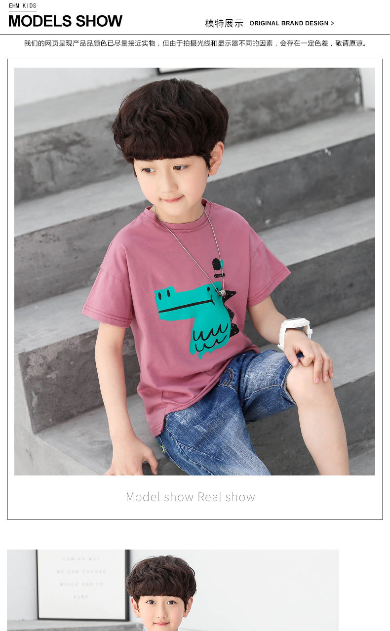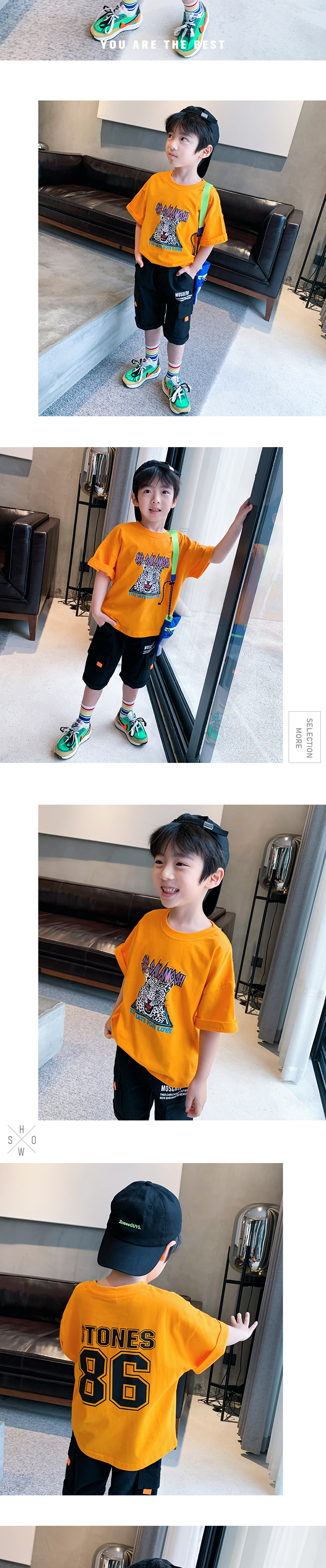 여름 새 남아 반팔 티셔츠 어린이 아기 크루넥 라이크라 탑 편안한 베이스 셔츠 대형 느슨한스토어 가기