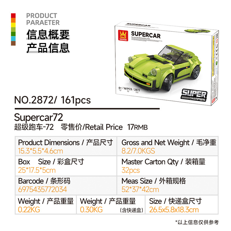 Wange 빌딩 블록 작은 입자 조립 교육 장난감 작은 상자 중국 빌딩 블록 어린이 6-12 세 소년 선물 스포츠카스토어 가기