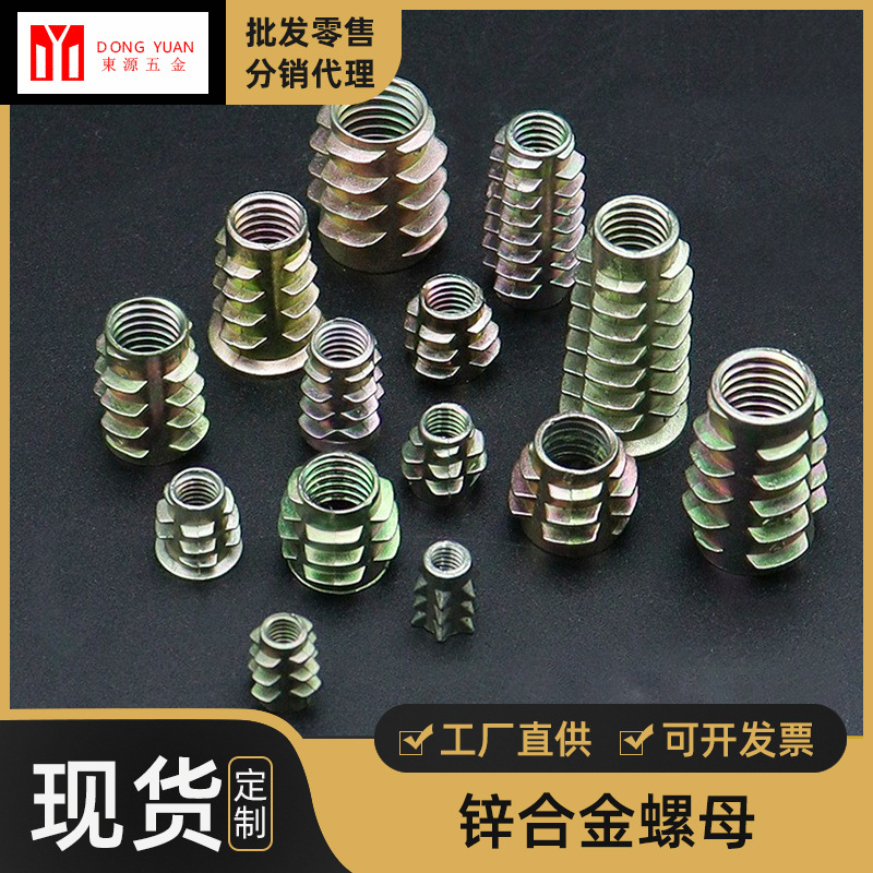 Mingsheng 가구 하드웨어 액세서리 아연 합금 내부 및 외부 치아 내장 철 매체 가시 어머니 사다리꼴 너트 링 너트 도매