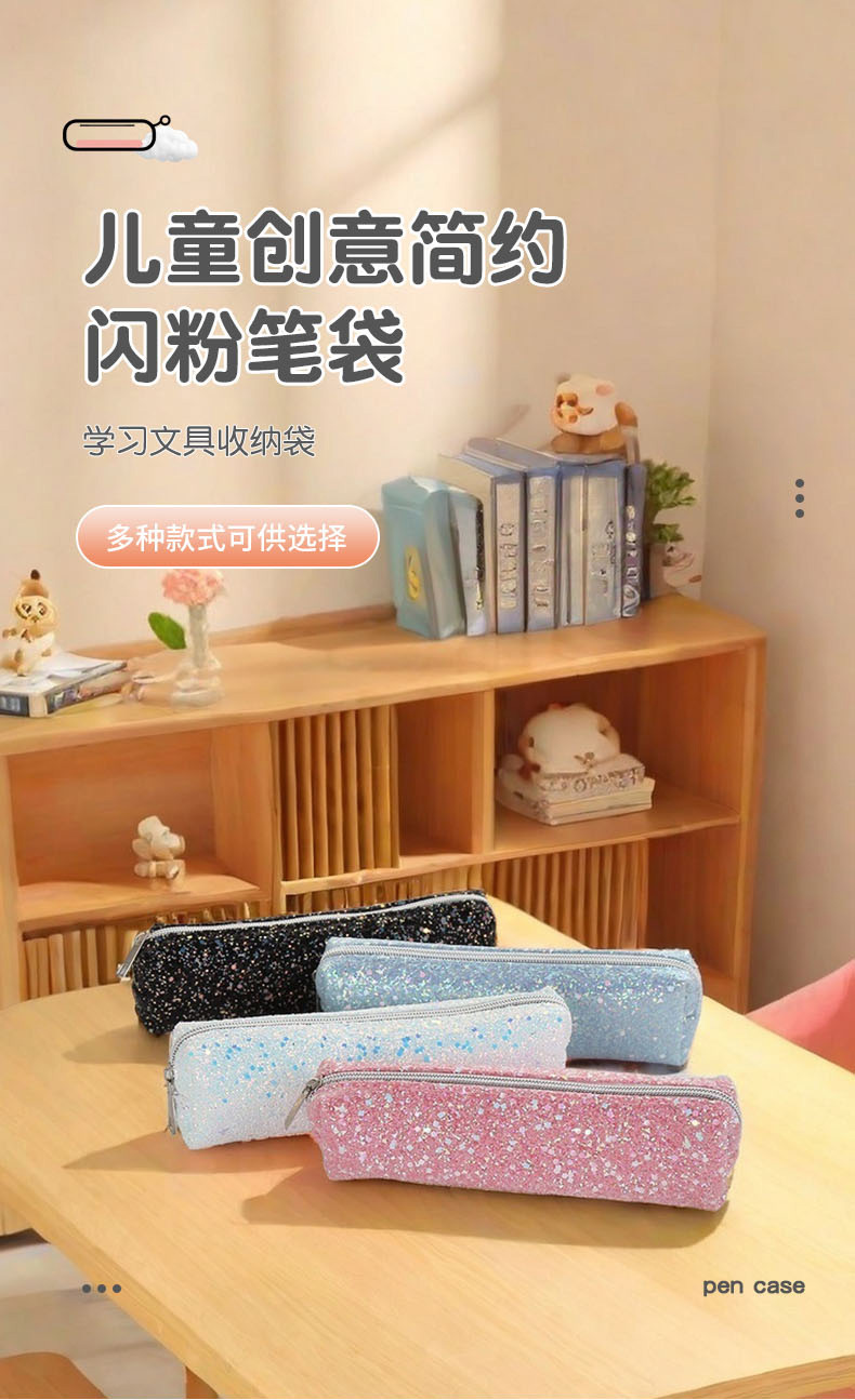 플래시 파우더 필통 어린이 학습 문구 보관 가방 창조적 인 간단한 남여 공용 실린더 필통 제조 업체 도매
