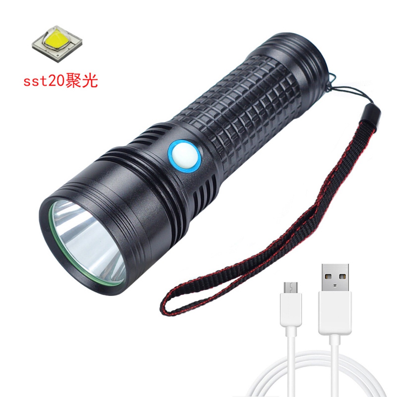 새로운 USB 손전등 sst20 강한 빛 손전등 26650 알루미늄 합금 응축 방수 LED 조명 도매