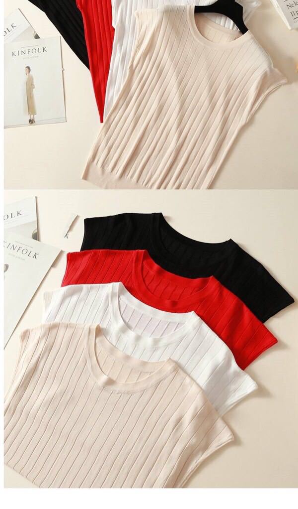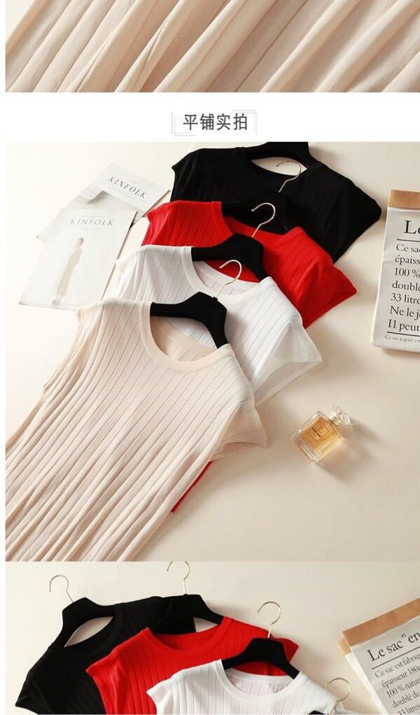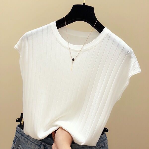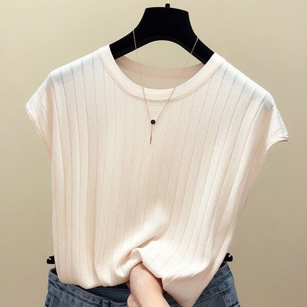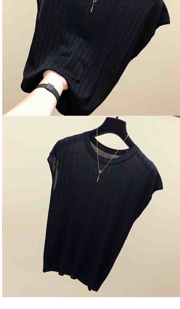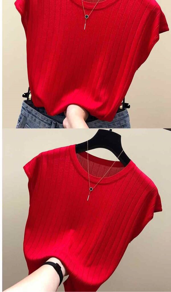 봄과 여름 유럽 역 심플 라운드 넥 블라우스 느슨한 얇은 아이스 실크 니트 셔츠 여성용 반팔 티셔츠스토어 가기
