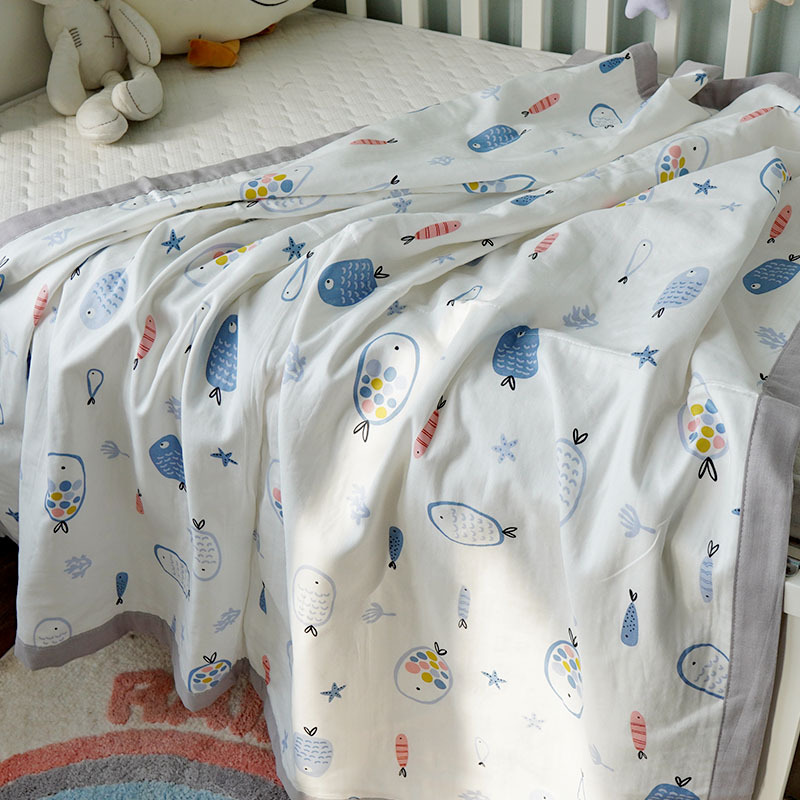 순면 더블 레이어 거즈 얇은 이불 어린이 여름 이불 아기 얇은 이불 만화 여름 시원한 이불 에어컨 이불 긴 면화