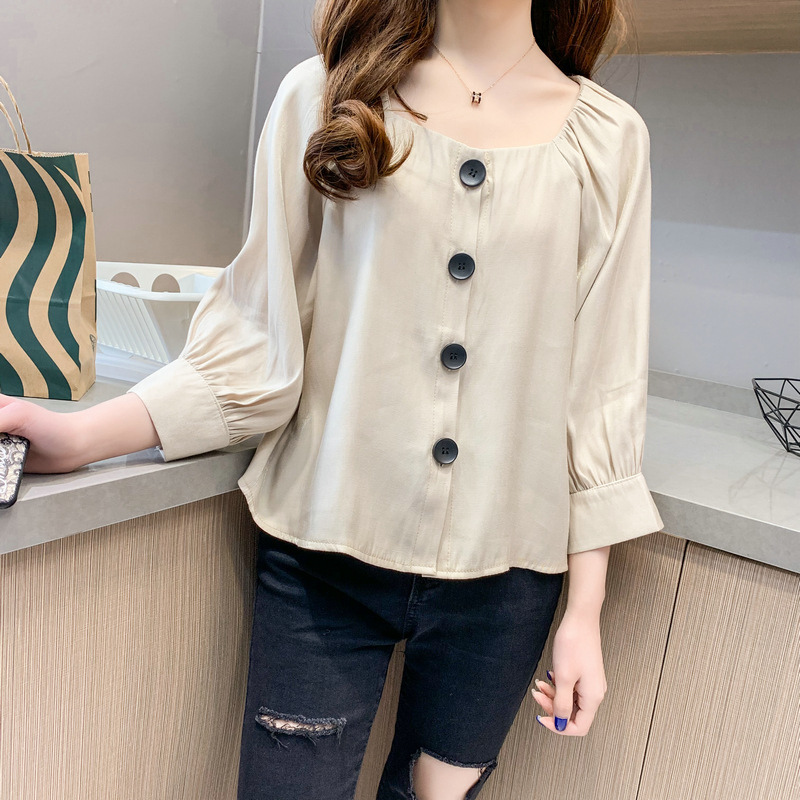 인터넷 연예인 쉬폰 셔츠 여성 2024 봄 신작 7부 소매 셔츠 홍콩 스타일 슬림 셔츠 디자인 탑 트렌디스토어 가기