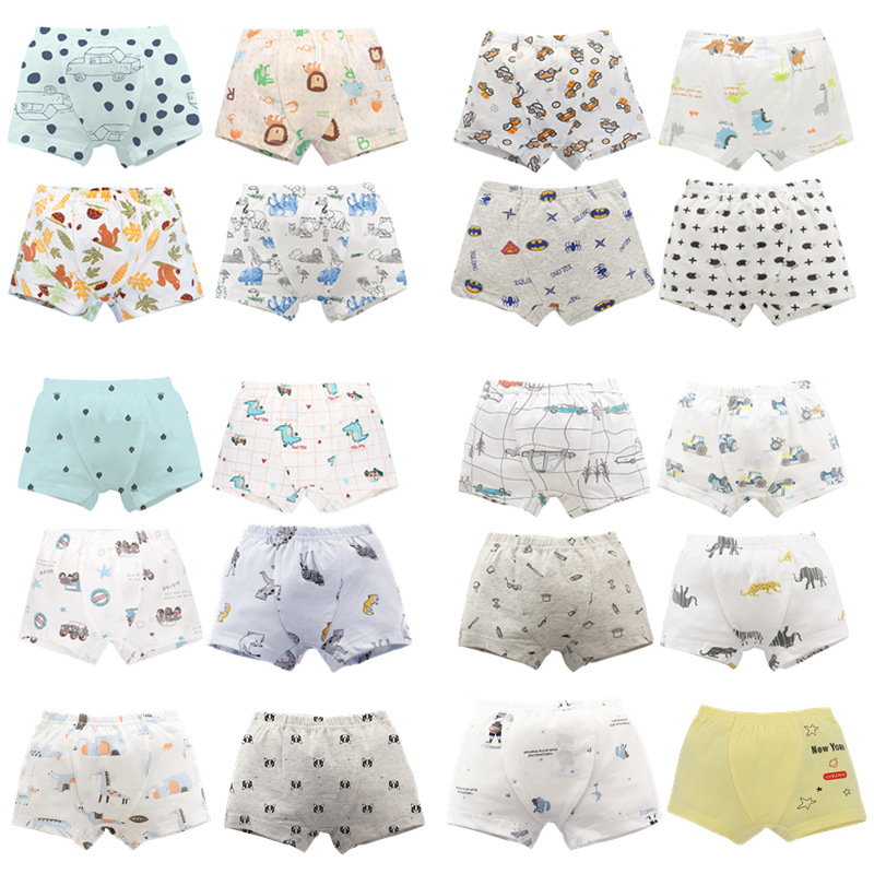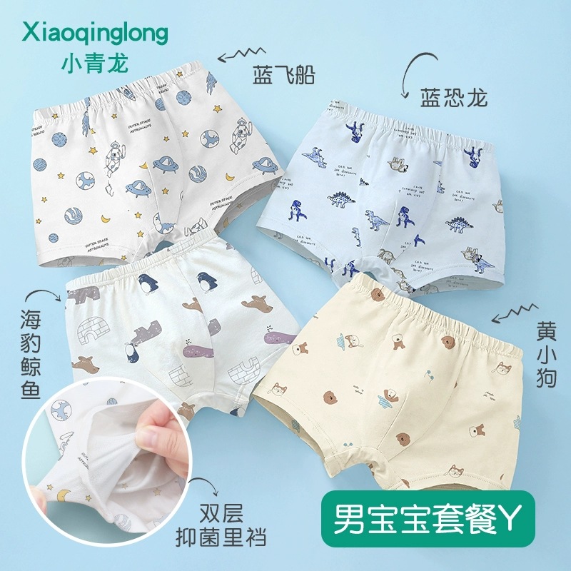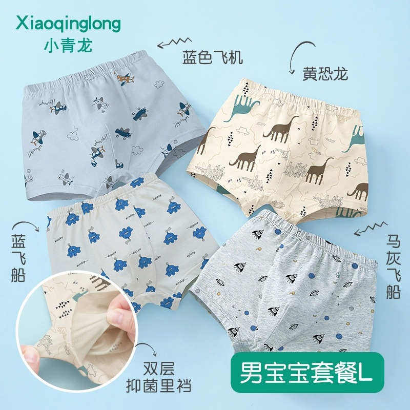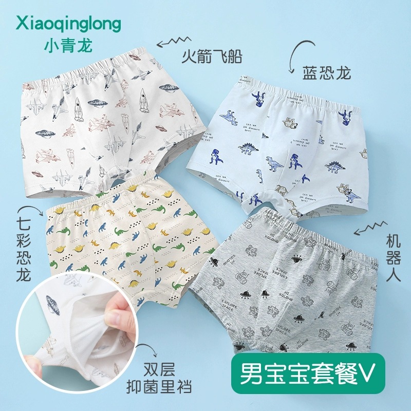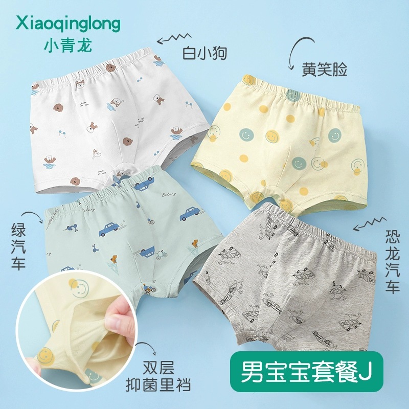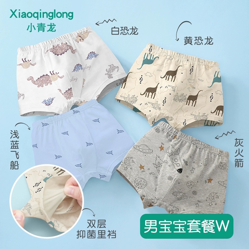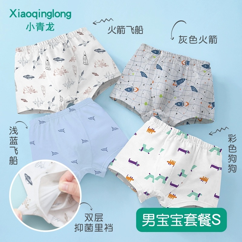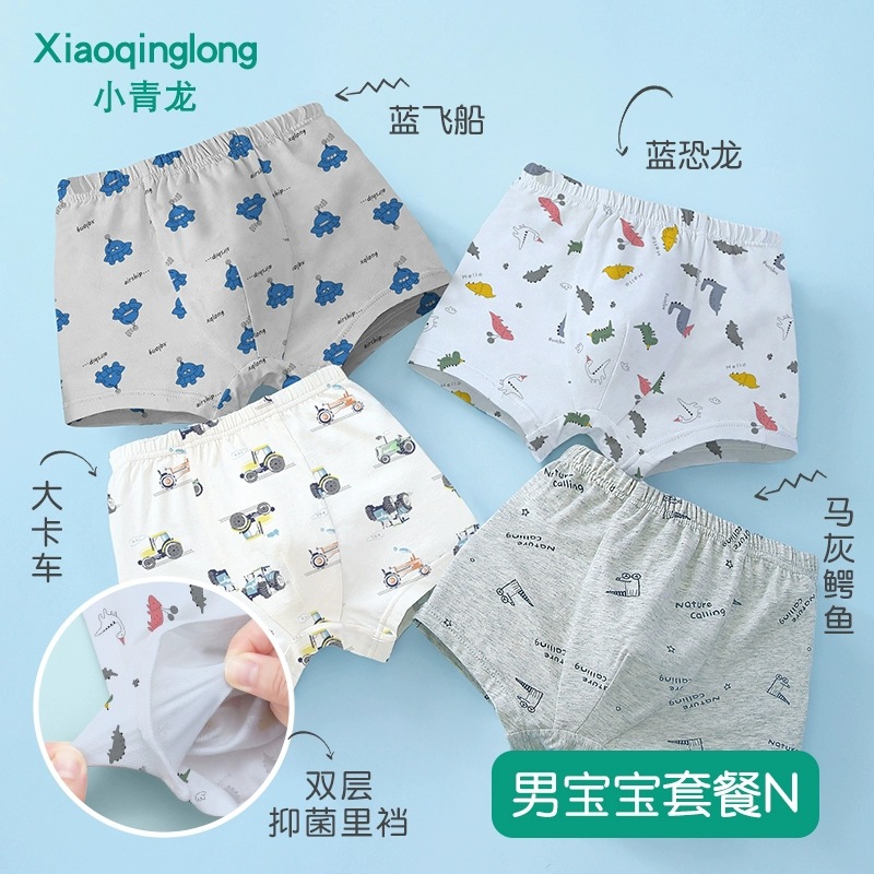 리틀 Qinglong 라이크라 어린이 속옷 남아 남아 복서 반바지 만화 인쇄 중형 및 대형 어린이 4 세트