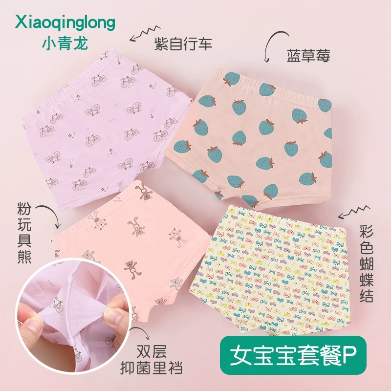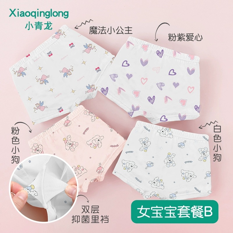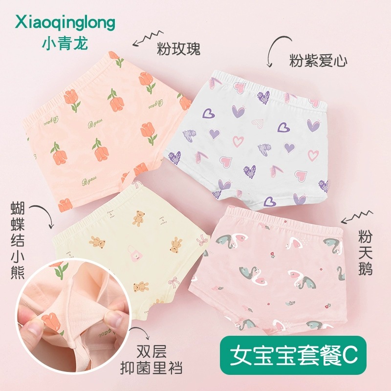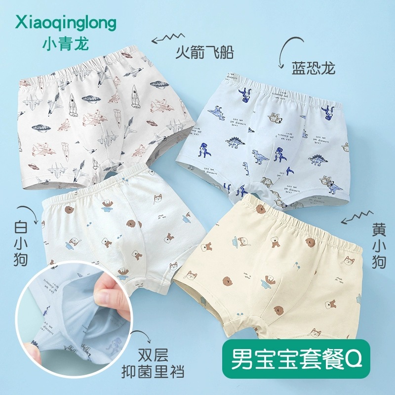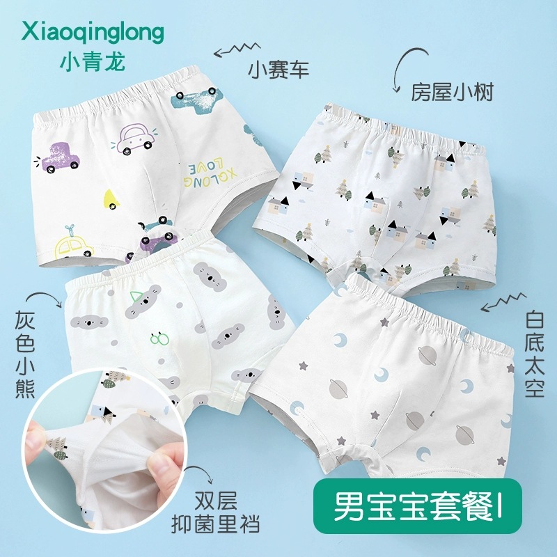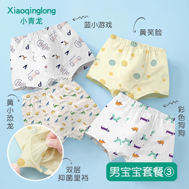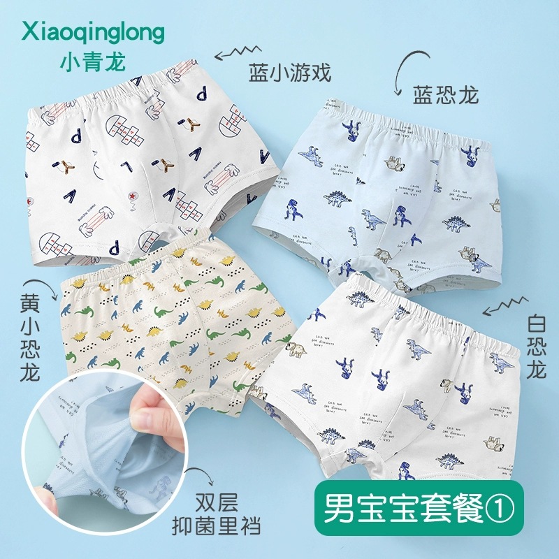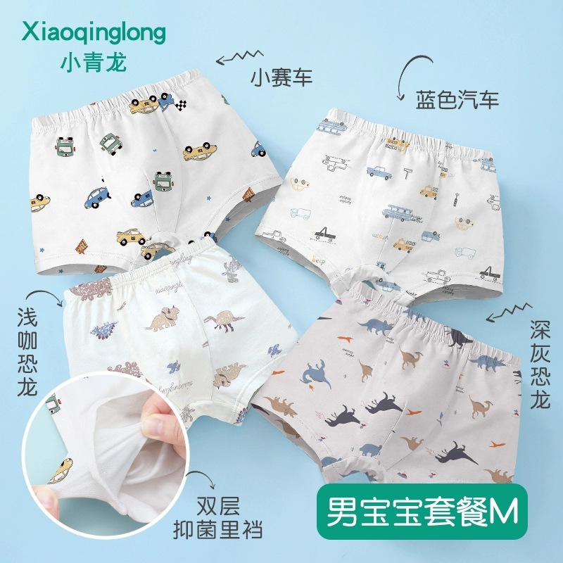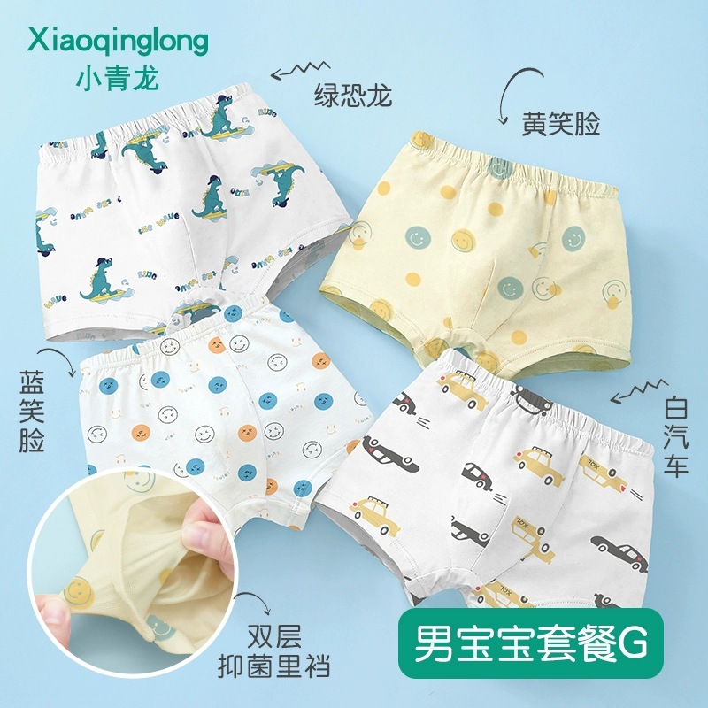 리틀 Qinglong 라이크라 어린이 속옷 남아 남아 복서 반바지 만화 인쇄 중형 및 대형 어린이 4 세트
