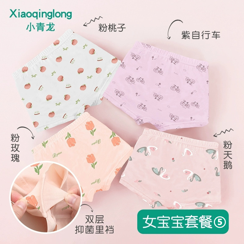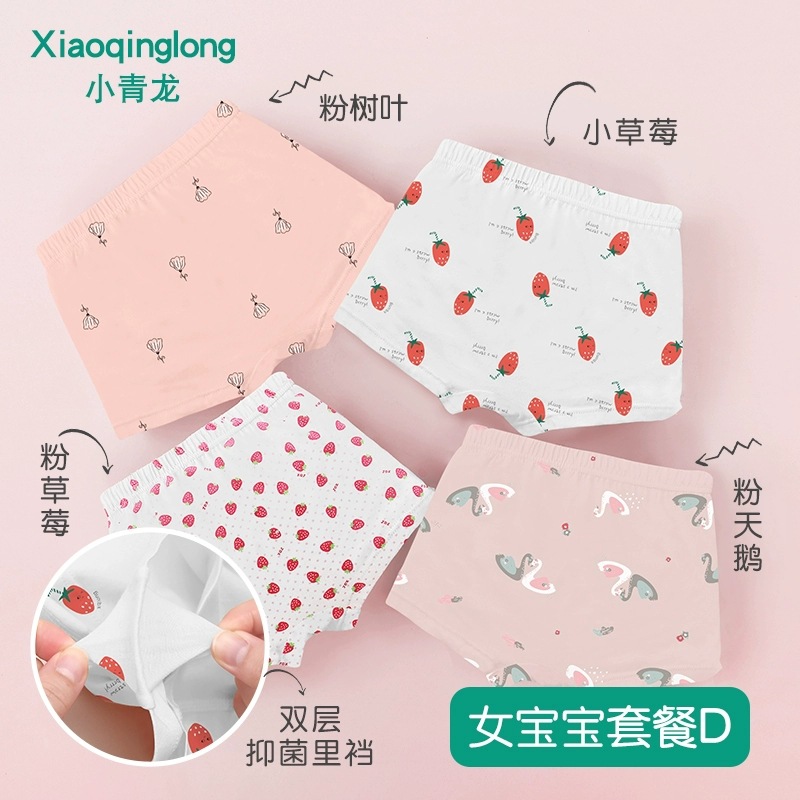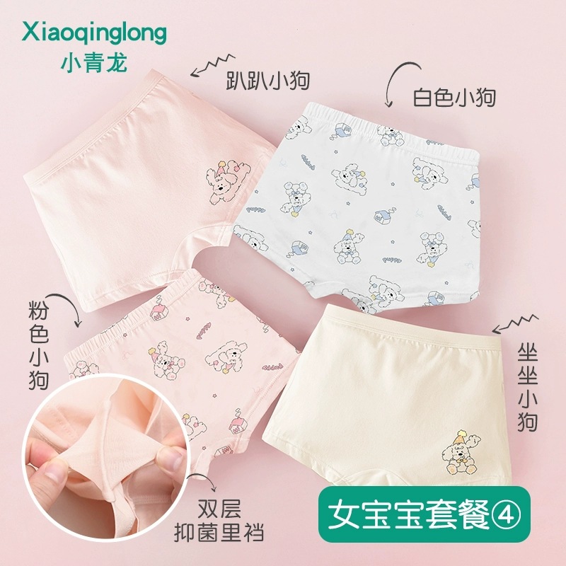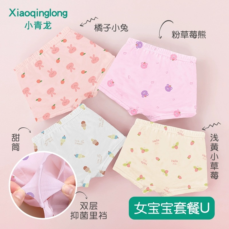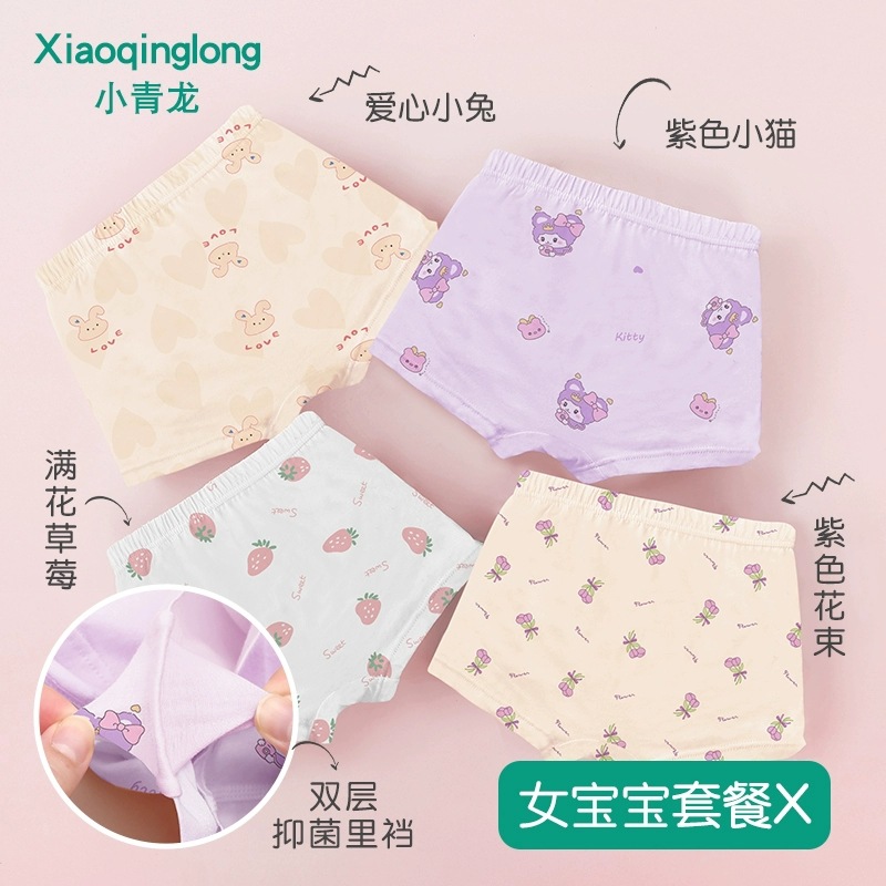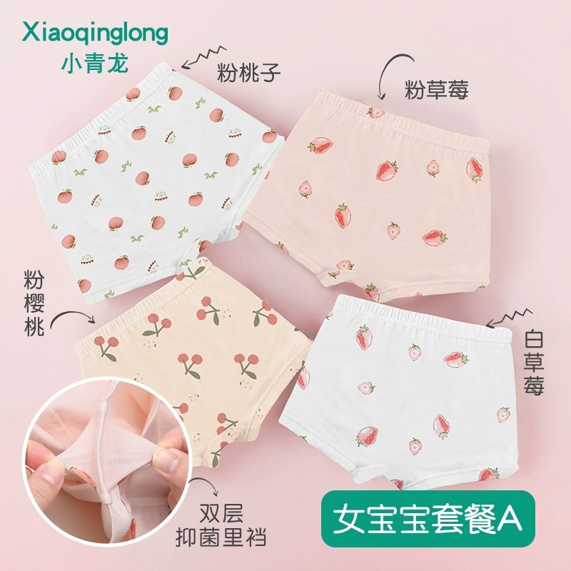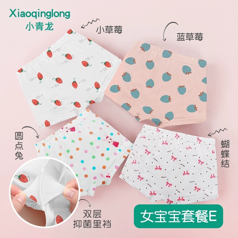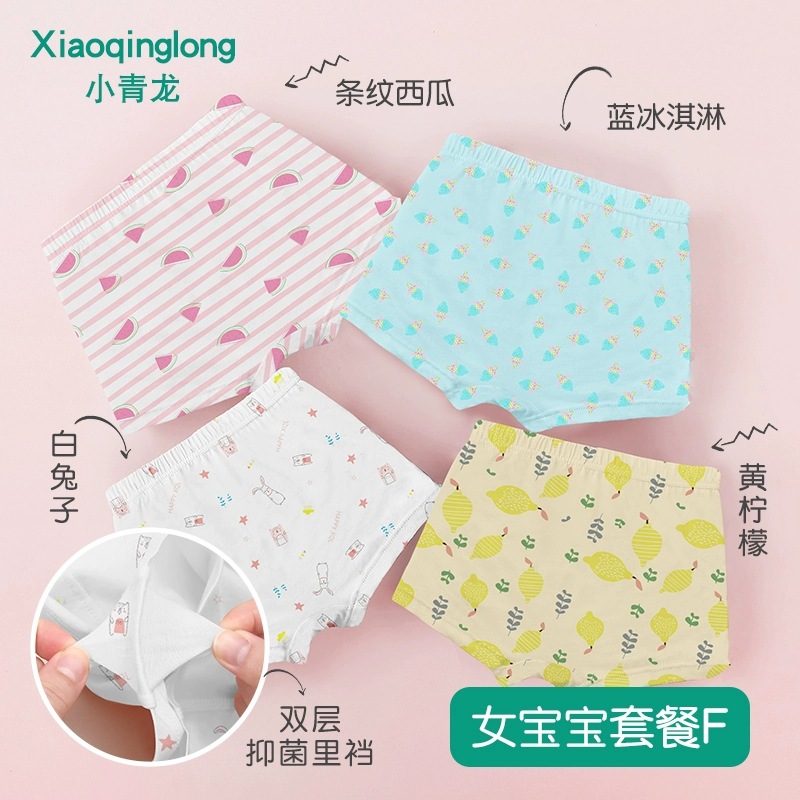 리틀 Qinglong 라이크라 어린이 속옷 남아 남아 복서 반바지 만화 인쇄 중형 및 대형 어린이 4 세트