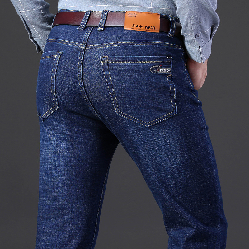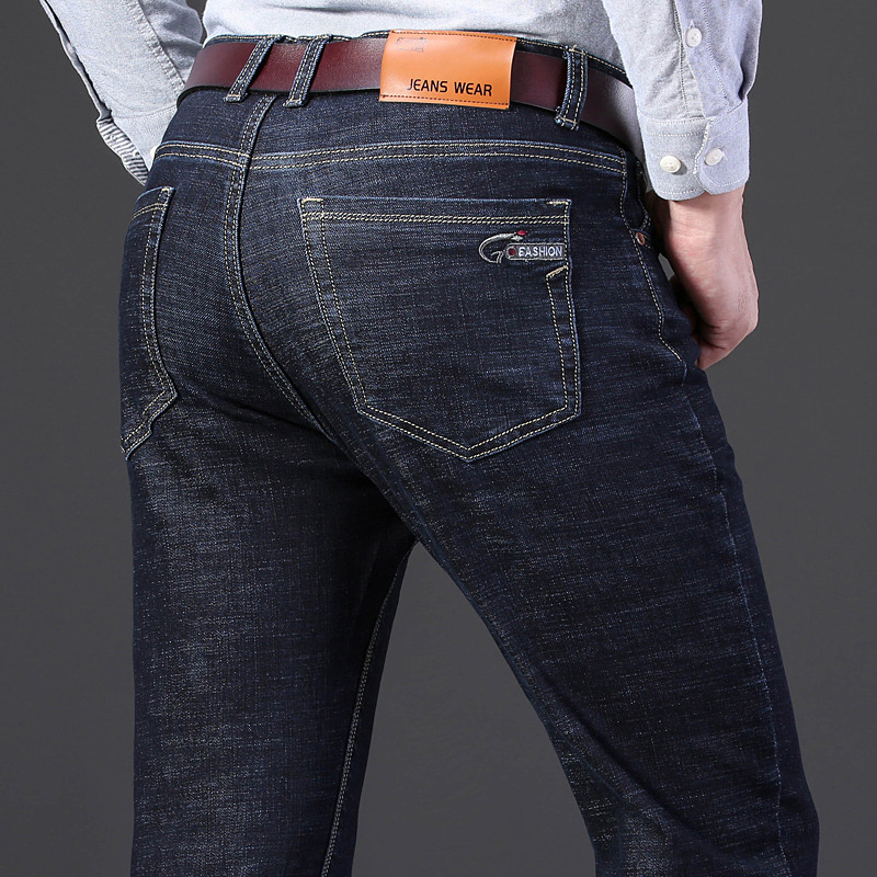 높은 스트레치 기모 두꺼운 남자의 청바지 남자의 느슨한 뚱뚱한 플러스 사이즈 플러스 사이즈 면 벨벳 바지 가을과 겨울스토어 가기
