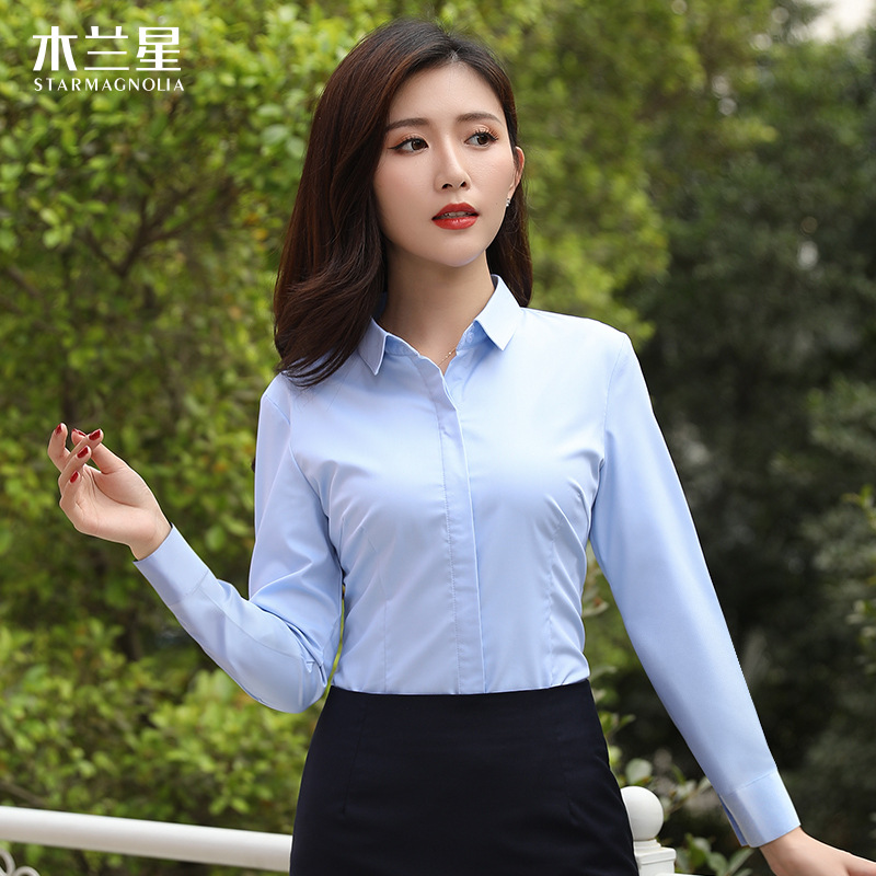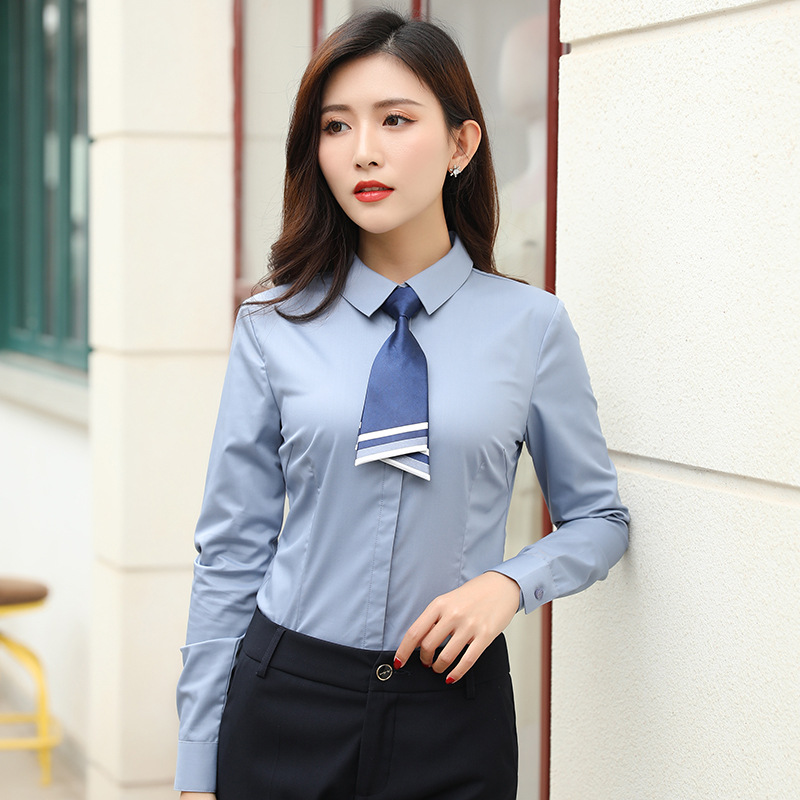 화이트 셔츠 여성의 긴 소매 봄과 여름 새로운 회색 작업 최고 우편 은행 비즈니스 작업 전문 셔츠스토어 가기