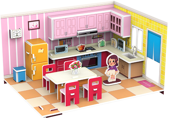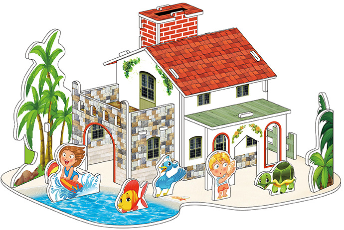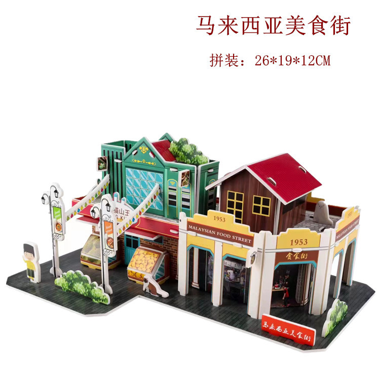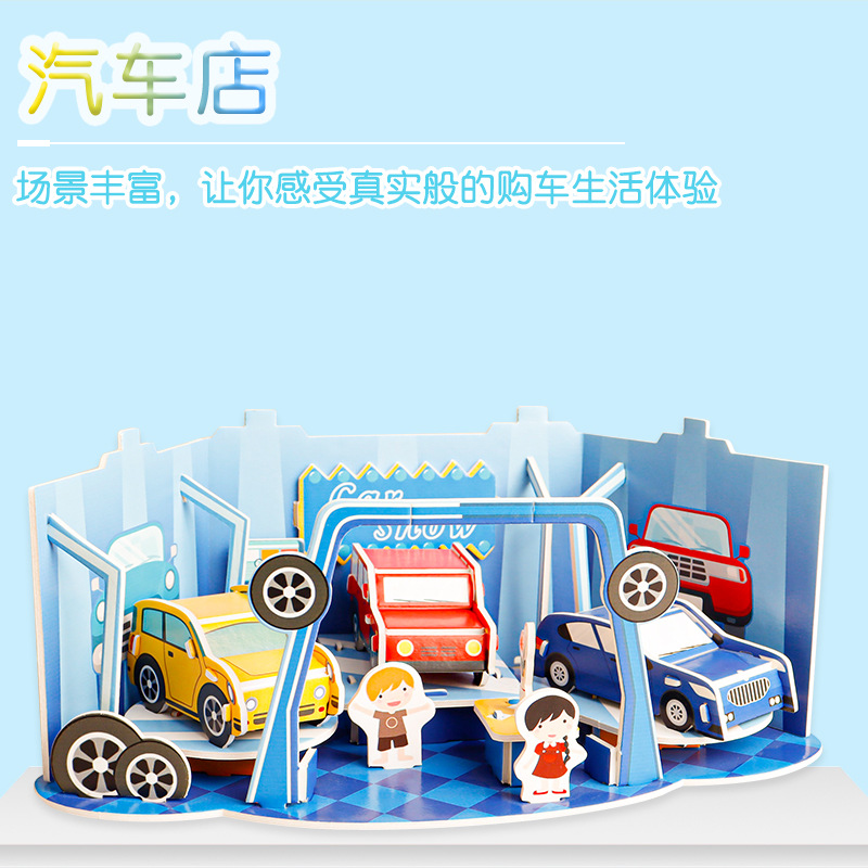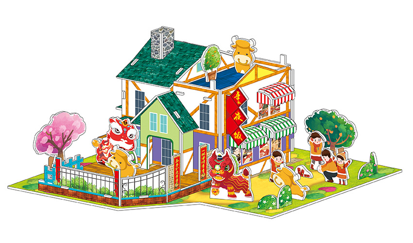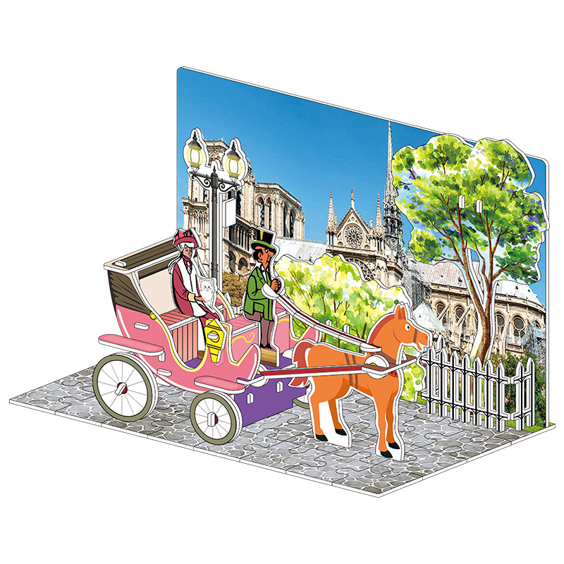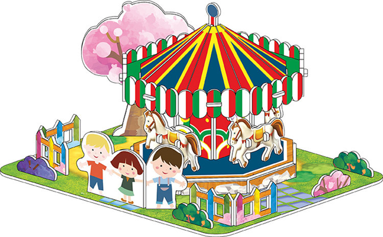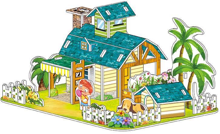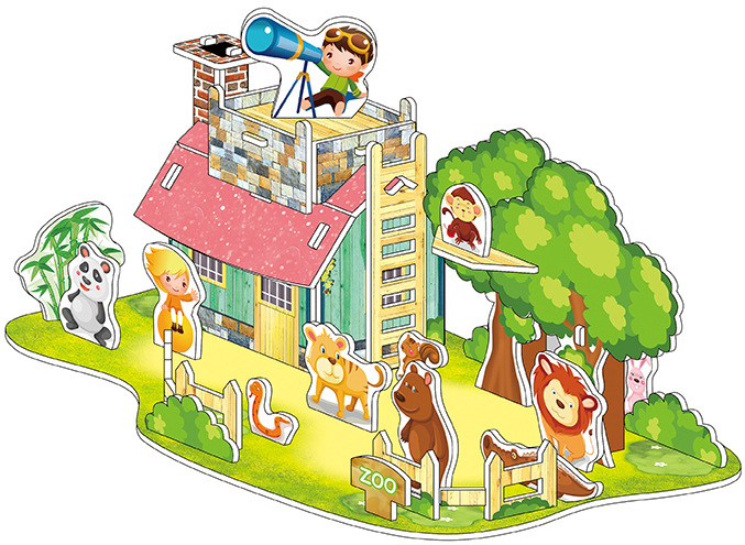 此系列立体拼图不同于一般的纸制,木质和塑料的拼图,每一片由三层结构裱合而成,正反两面是四色印刷的纸张,均由德国海德堡四色机一次印成,图案精美,色彩艳丽,中间是一层特殊密度的泡沫板,轻巧硬挺,拼装完成后整体结构紧密合理,造型逼真,有立体感。
