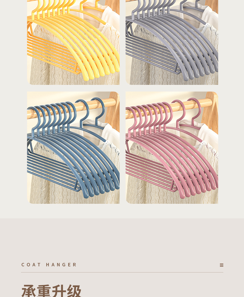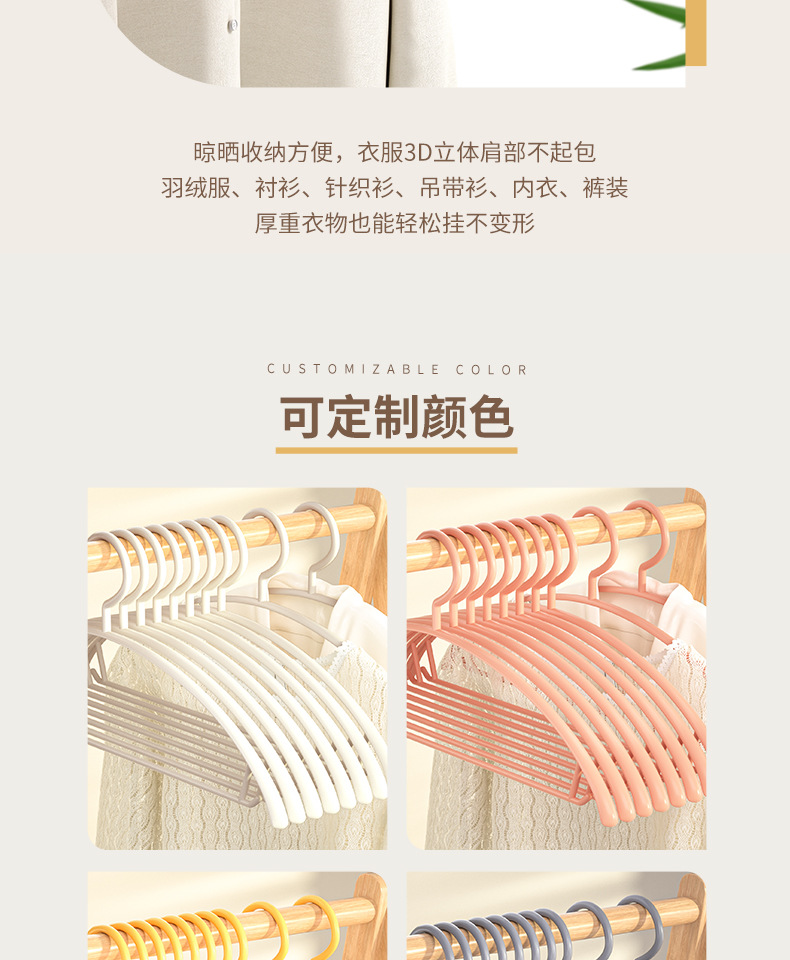 반원형 굵은 플라스틱 제품 옷걸이 가정용 미끄럼 방지 옷 옷걸이 성인 트레이드리스 어깨 안티-벌지 가방 옷걸이스토어 가기