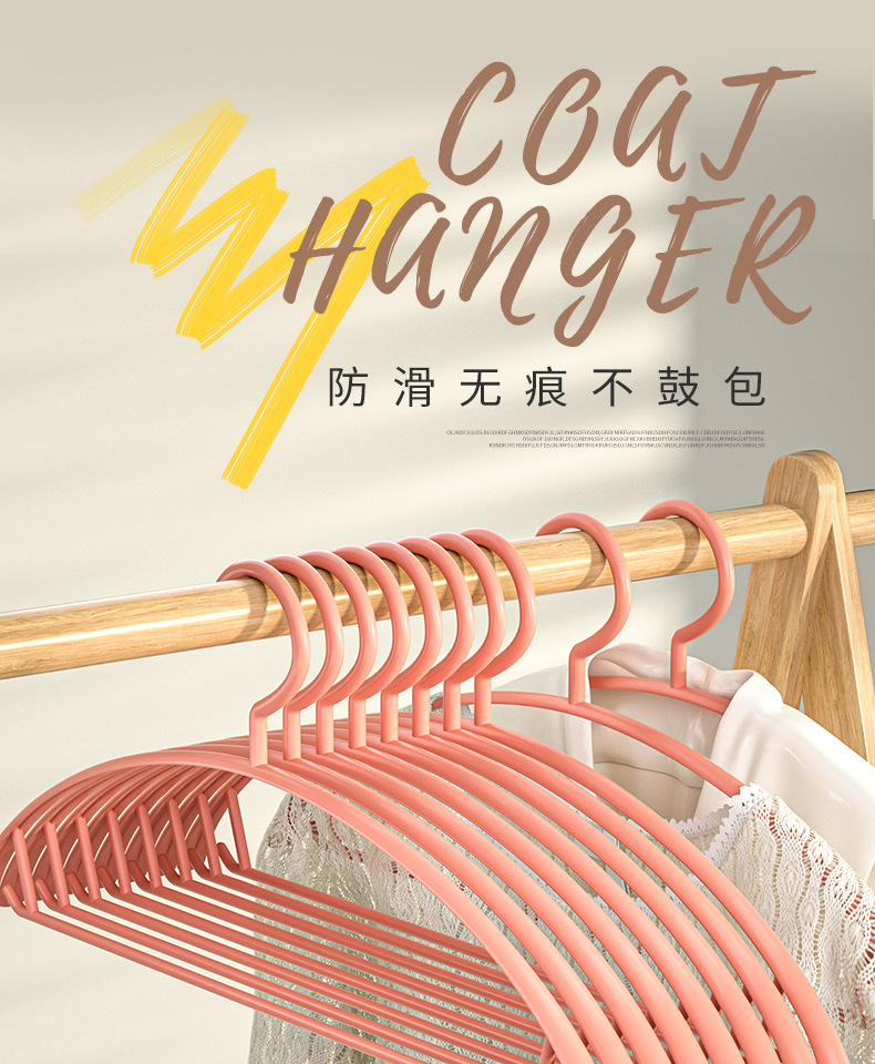 반원형 굵은 플라스틱 제품 옷걸이 가정용 미끄럼 방지 옷 옷걸이 성인 트레이드리스 어깨 안티-벌지 가방 옷걸이