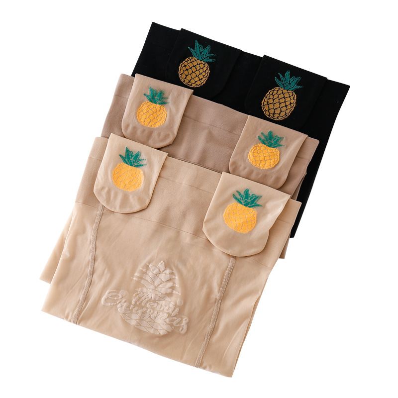 파인애플 양말 여름 초박형 벨벳 소형 T 파일 숙녀 얇은 스타킹 임의 컷 바닥 양말 투명 스타킹 바지