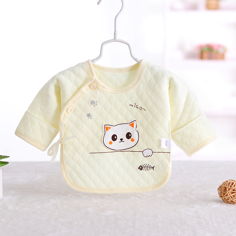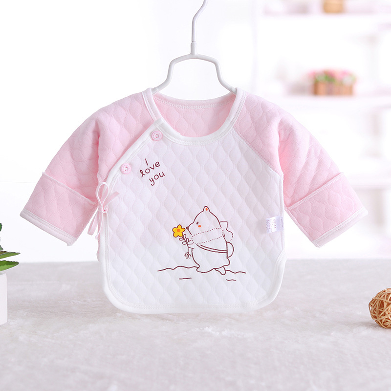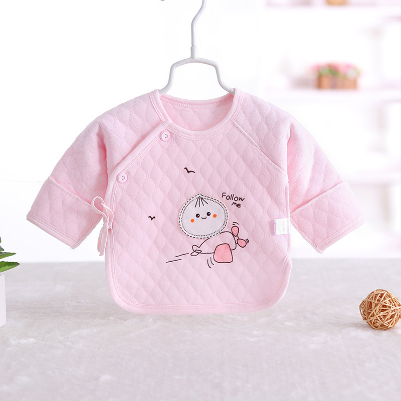 0-3 개월 따뜻한 하프 백 옷 신생아 옷 순면 새 신생아 아기 파기 백 셔츠 레이스 업 탑스토어 가기