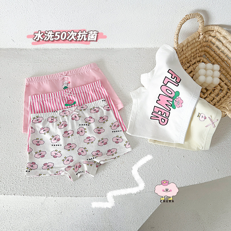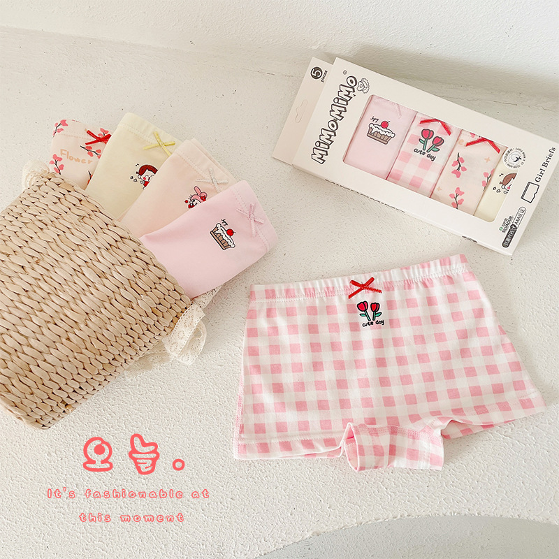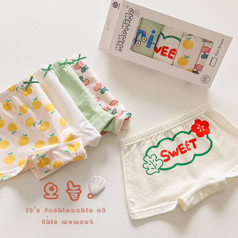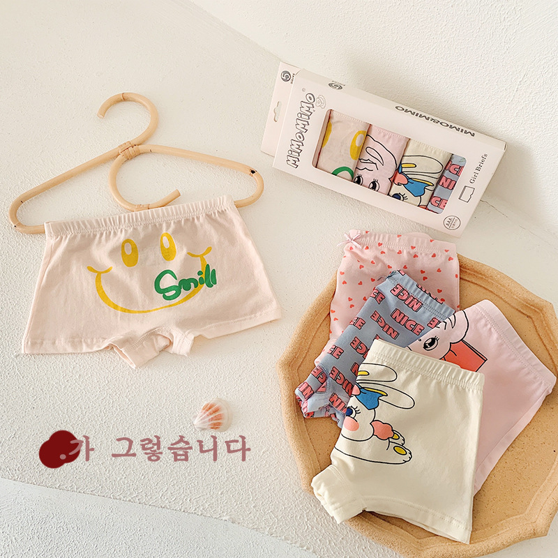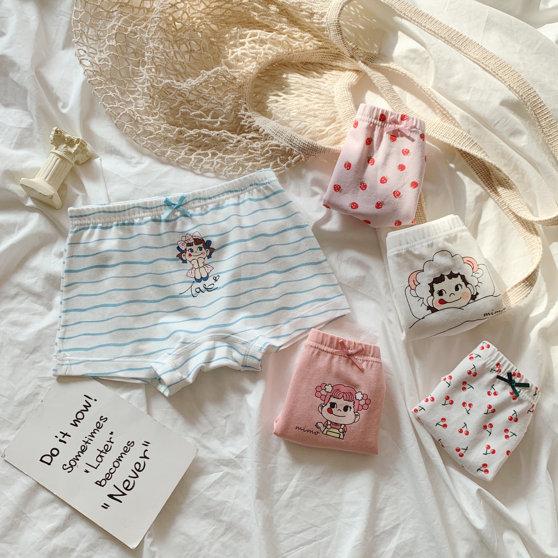MIMO 새로운 순면 클래스 A 어린이 속옷 아기 소녀 복서 팬티 중소 어린이 만화 반바지 대외 무역 5 팩스토어 가기