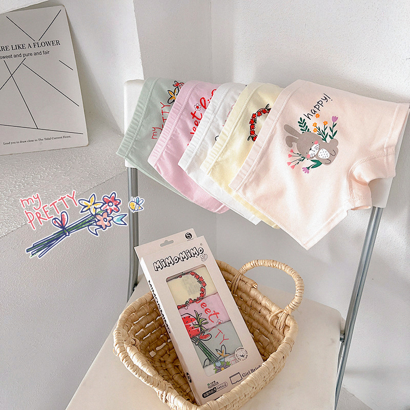 MIMO 새로운 순면 클래스 A 어린이 속옷 아기 소녀 복서 팬티 중소 어린이 만화 반바지 대외 무역 5 팩