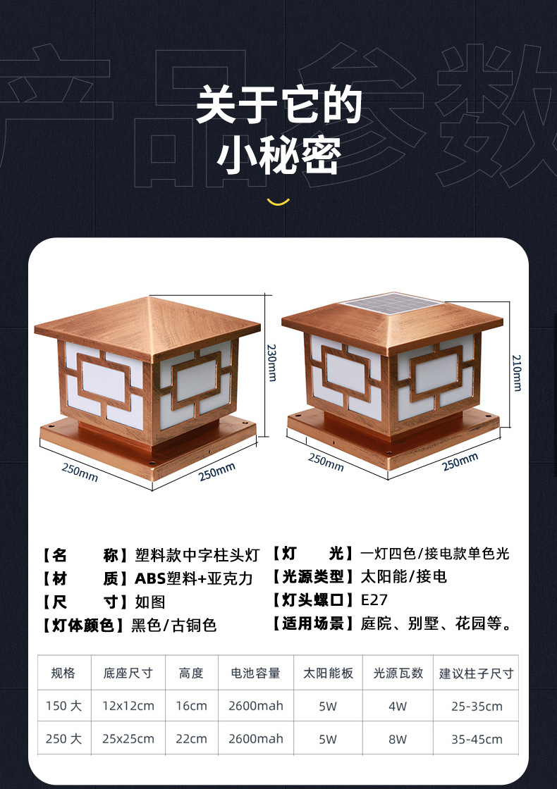 태양열 기둥등, 야외 방수, 시공현장 울타리등, 가정용 마당 울타리 기둥등, 에너지 절약