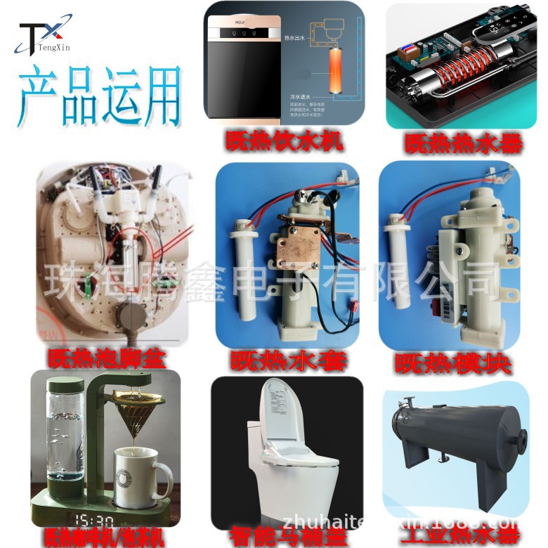 主要运用:鱼缸加热,设备磨具加热,水加热,电热水龙头,咖啡机,地暖水加热,锅炉水加热等等