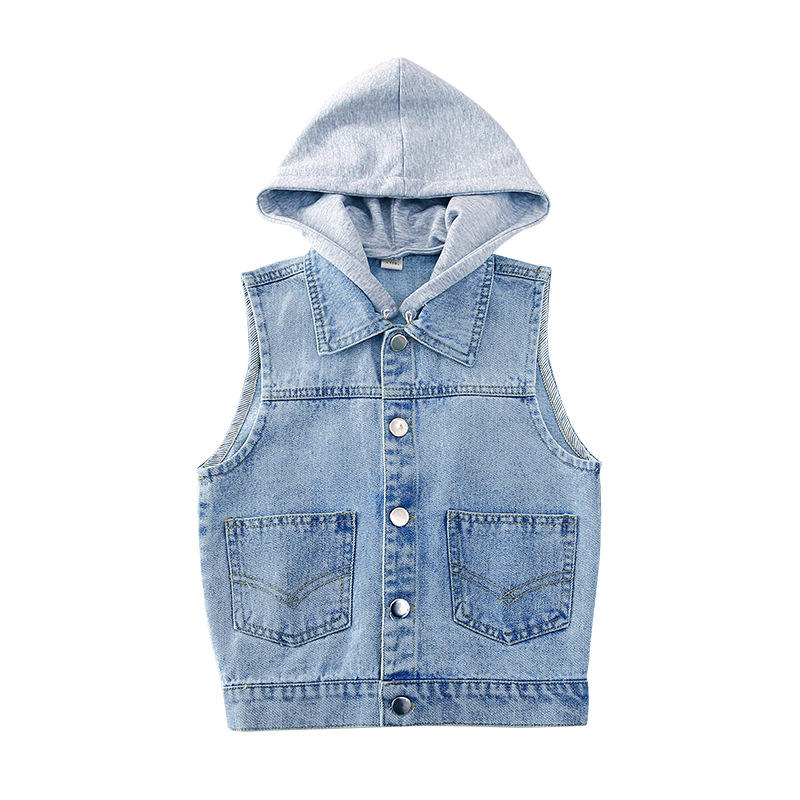 여아 봄과 가을 데님 조끼 코트 어린이 학생 2023 분리형 후드 패션 데님 탑스토어 가기