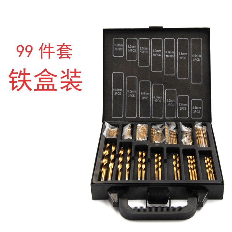 공장 직접 99pc 티타늄 도금 스트레이트 생크 트위스트 드릴 1.5-10mm 목공 드릴 세트 손 드릴 드릴링 도구스토어 가기