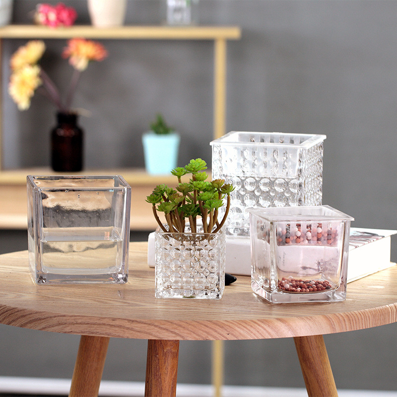 수경 사각 유리 용기 투명 사각 실린더 구리 돈 잔디 사각 꽃병 용기 컵 화분 심플