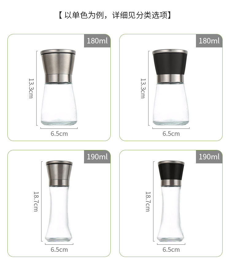 스테인리스 스틸 후추 그라인더 수동 갓 갈아낸 고추통 블랙 페퍼 후추 가루 가정용 조미료 빈 병 향신료