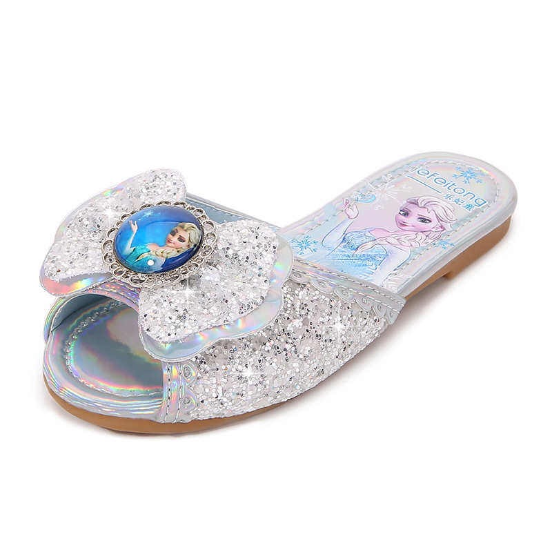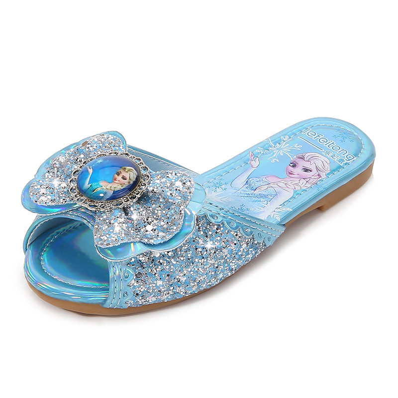 엘사 공주 슬리퍼 귀여운 어린이 여자아이 슬리퍼 실내외 미끄럼 방지 부드러운 밑창 공주 스타일