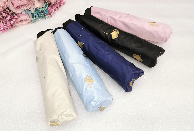 파라다이스 우산 33631E 은행 나무 플라잉 블랙 접착제 자외선 차단제 우산 UV 보호 맑은 비 3 접는 여자의 태양 우산