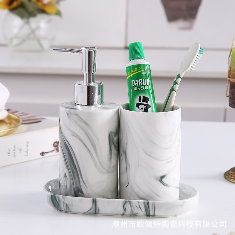 세라믹 욕실 키트 북유럽 호텔 홈 대리석 양치질 컵 칫솔 컵 홀더 세트 욕실 3 종 세트