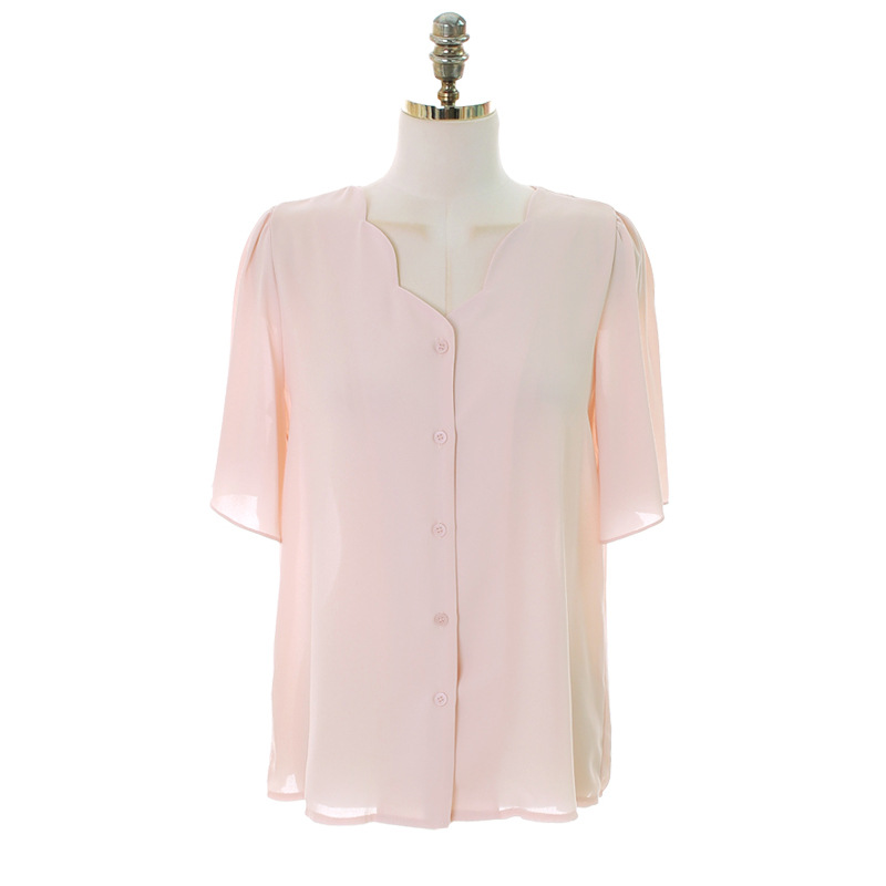 쉬폰 셔츠 여성 여름 2023 새로운 틈새 디자인 꽃잎 칼라 셔츠 스위트 탑 세련된 연령 감소 셔츠스토어 가기