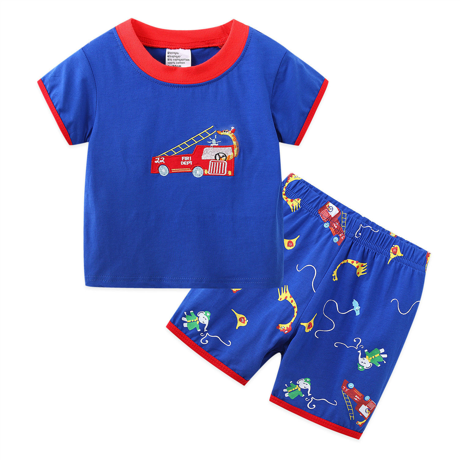 새로운 면 소재 아동복 세트, 남아용 반팔 홈웨어, 여름용 에어컨 의류, 아동용 잠옷스토어 가기