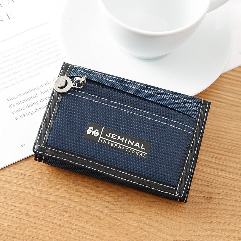 남자 한국식 천 3 배 짧은 캔버스 접이식 작은 지갑 어린 소년 고등학교 학생 간단한 유행 지퍼스토어 가기
