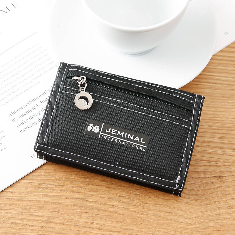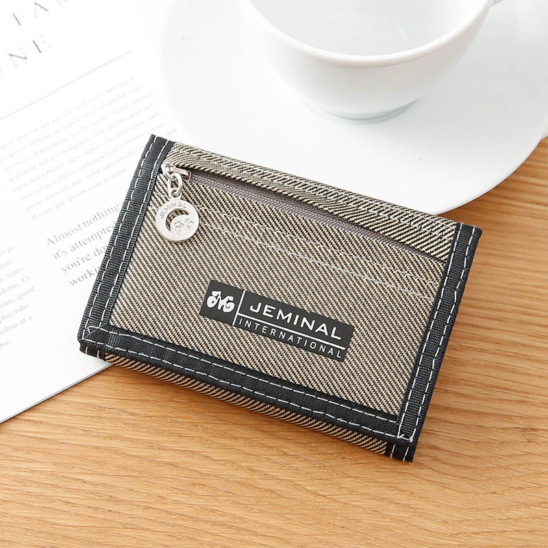 남자 한국식 천 3 배 짧은 캔버스 접이식 작은 지갑 어린 소년 고등학교 학생 간단한 유행 지퍼