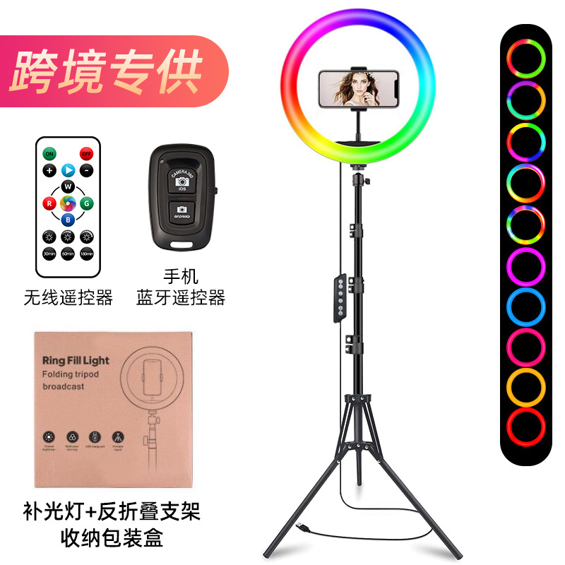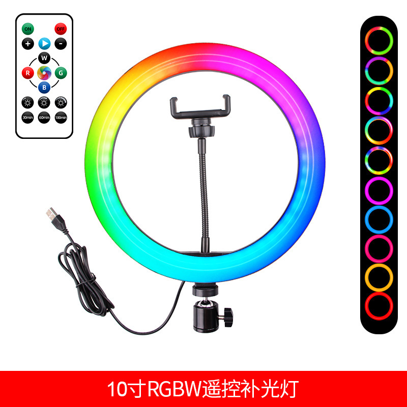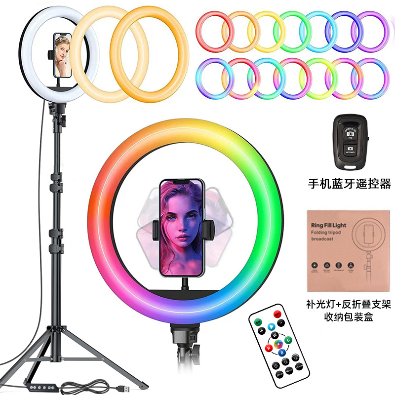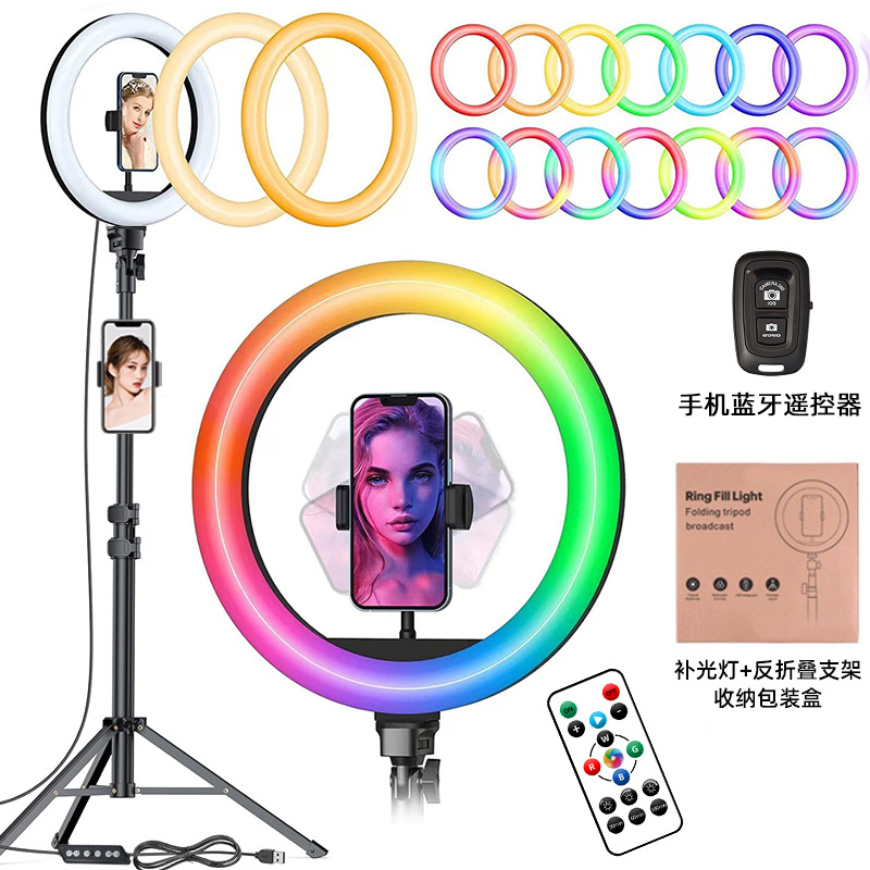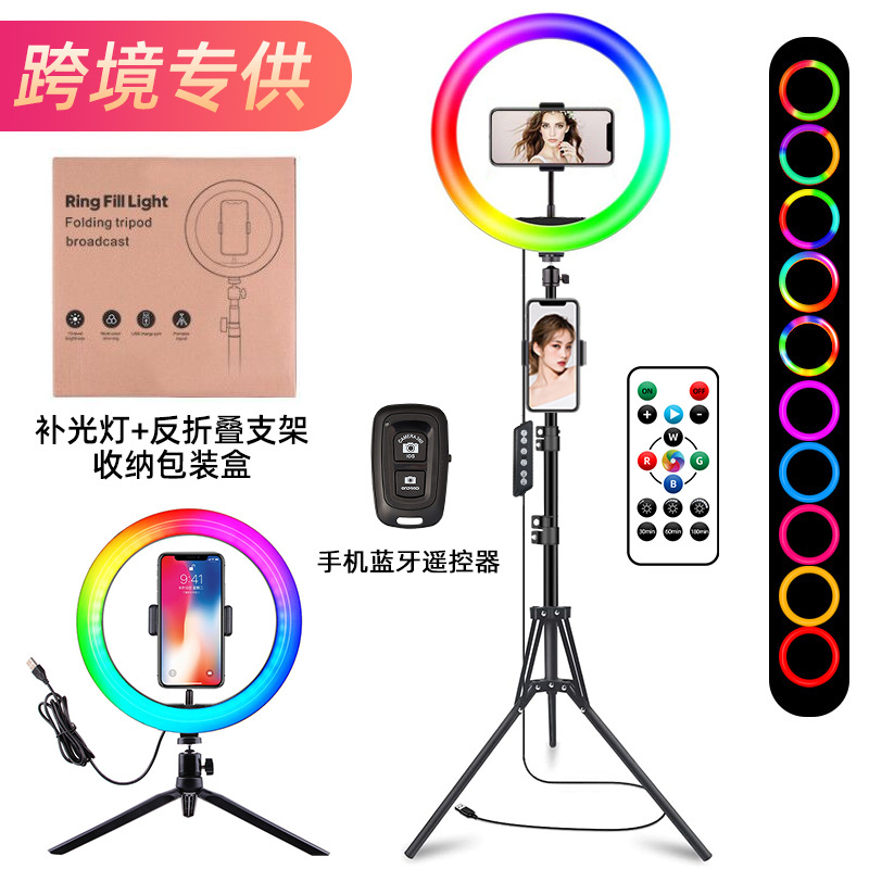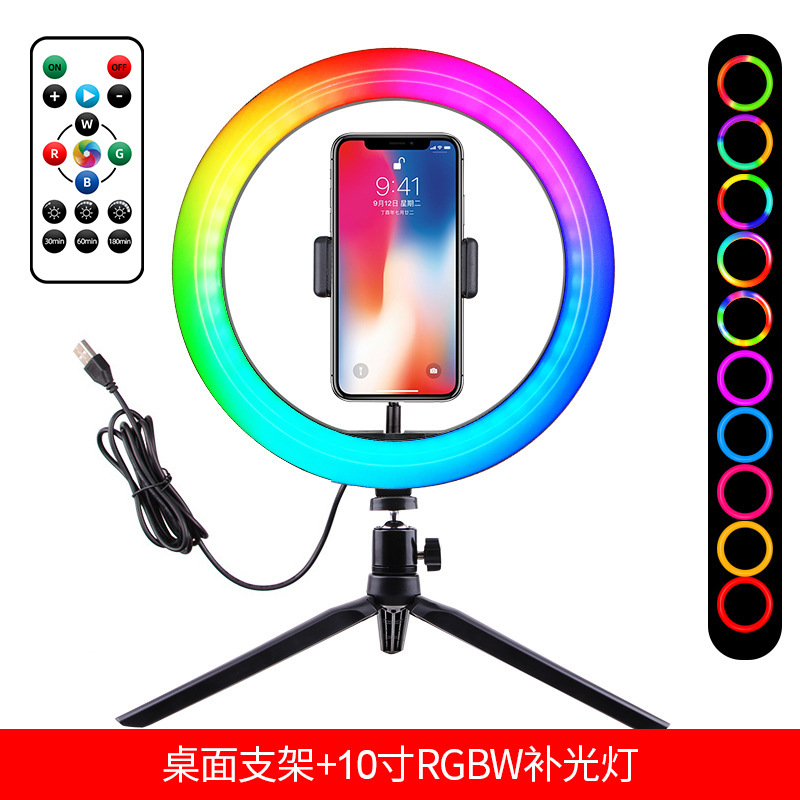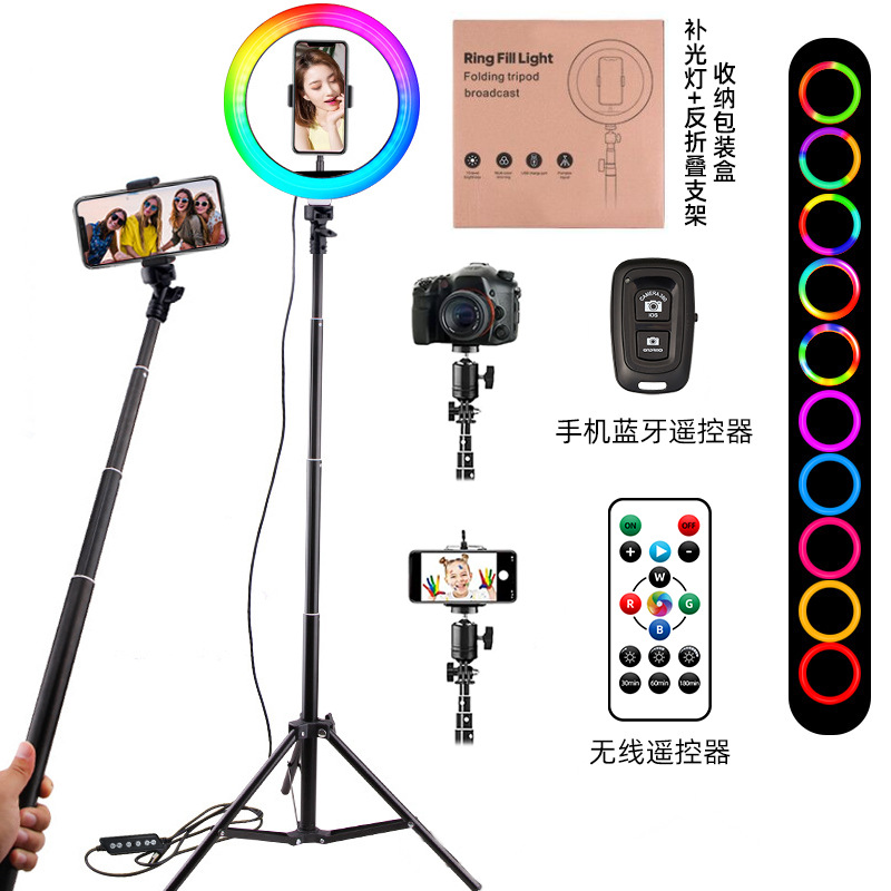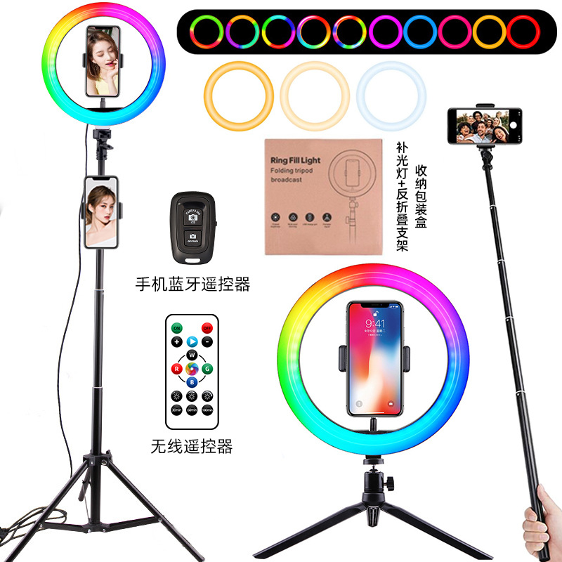 Rgb 채우기 빛 휴대 전화 라이브 스탠드 셀카 사진 휴대용 삼각대 led 다채로운 반지 빛 공장스토어 가기