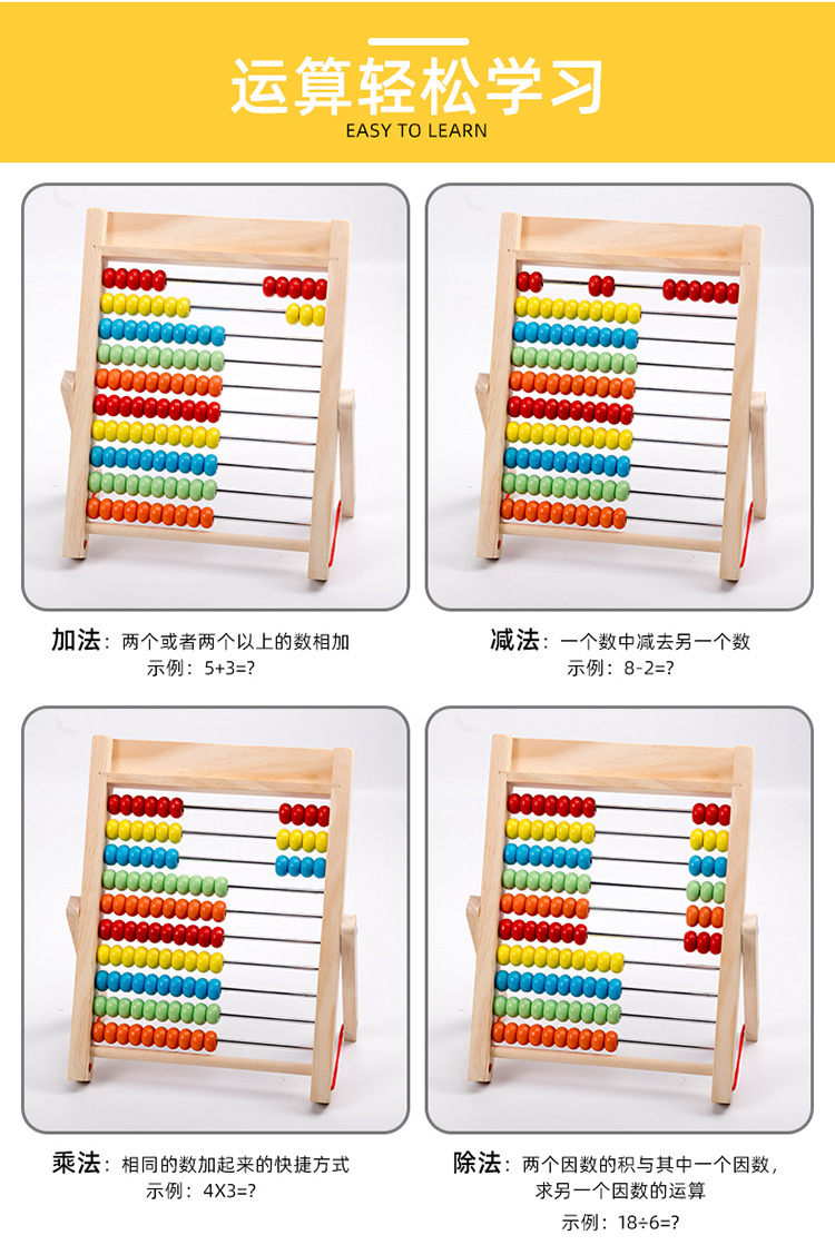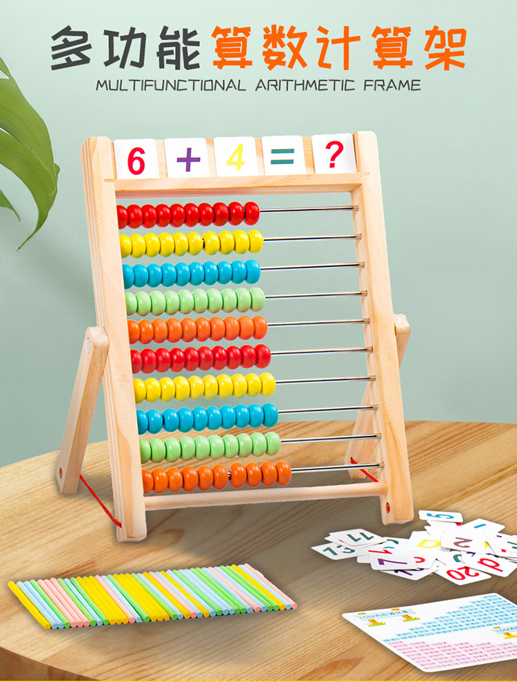 다기능 양면 자기 드로잉 보드 계산 프레임 솔리드 우드 카운터 어린이 볼 프레임 1 학년 수학 교육 지원스토어 가기