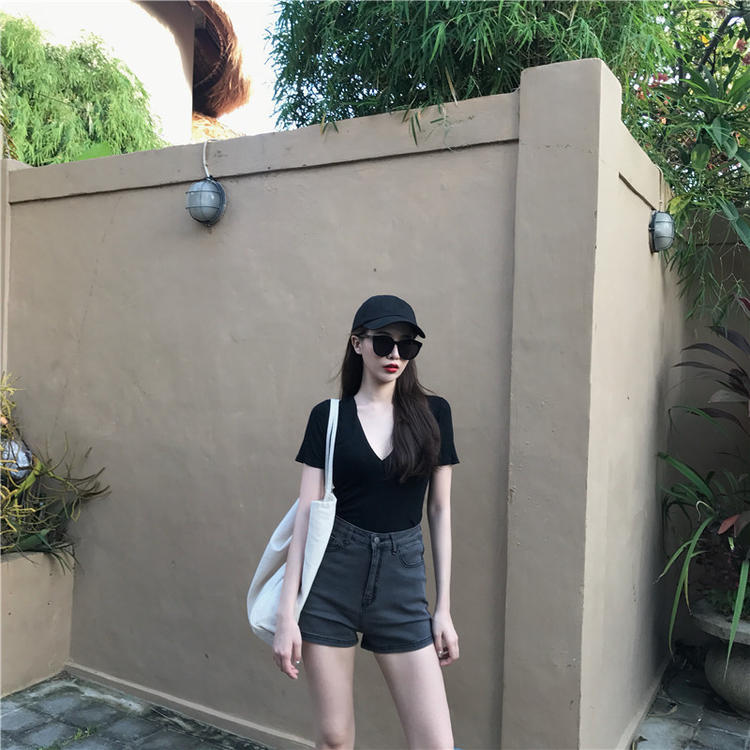 2025 여름 세련된 슬림 섹시한 신중한 v 넥 다목적 현아 스타일 태양 보호 셔츠 반팔 티셔츠 여성 탑 얇은스토어 가기