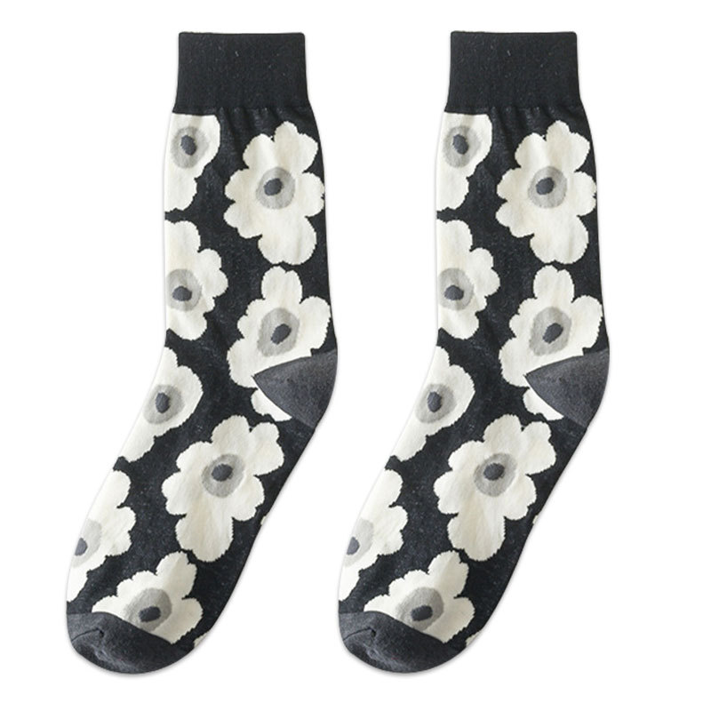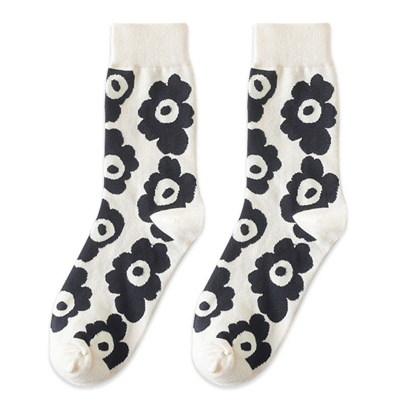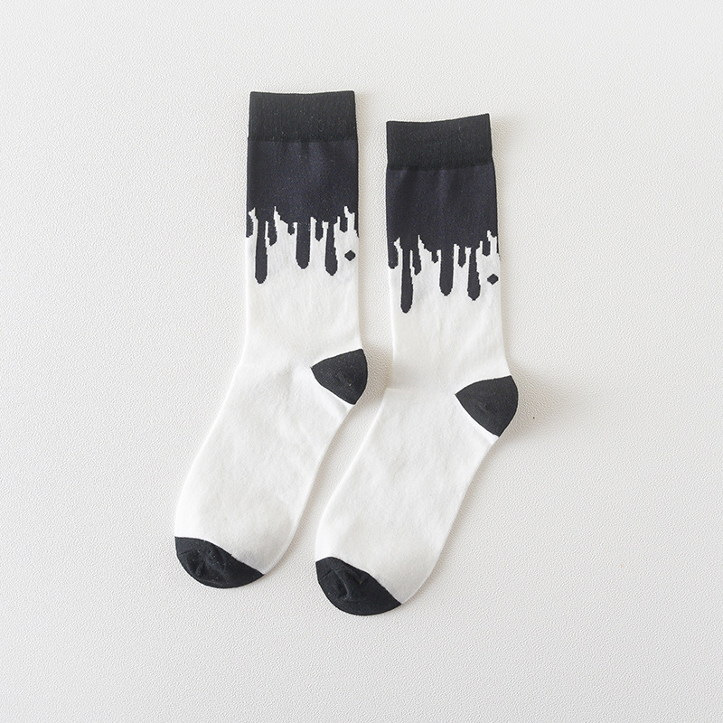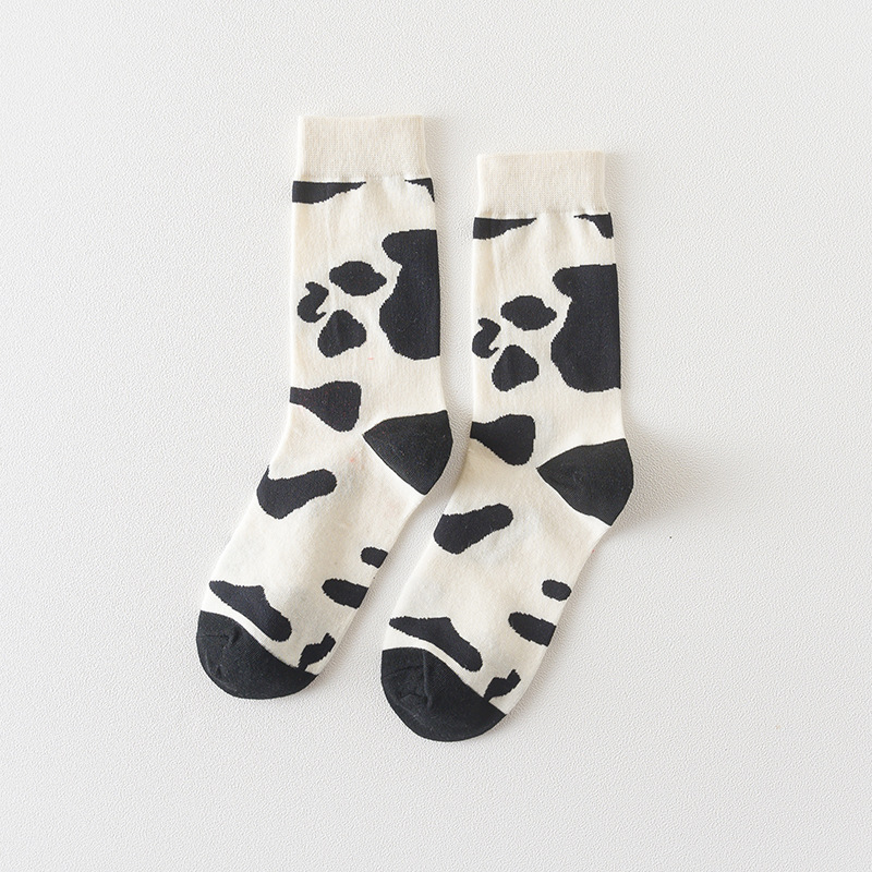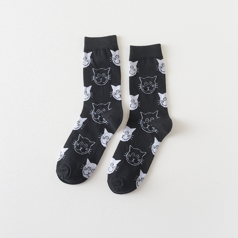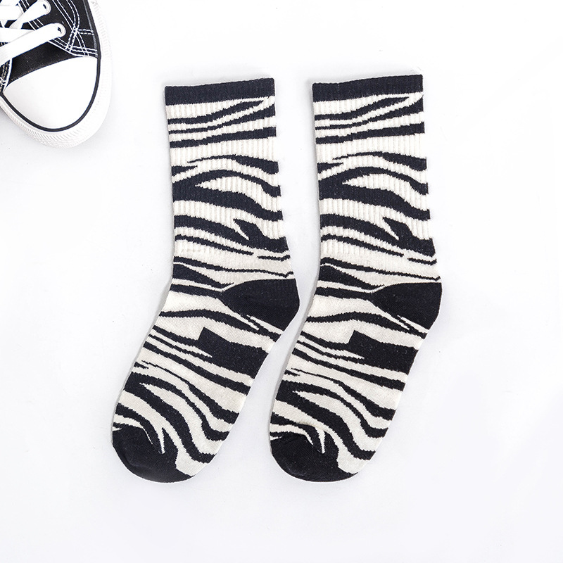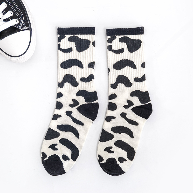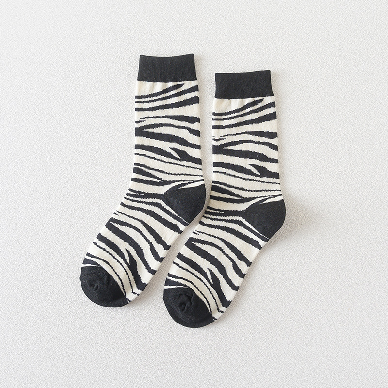 봄가을 양말 일본풍 젖소 커플 스타일 흑백 얼룩말 무늬 남녀 양말 고양이 패턴 인스 스타일 중목 양말